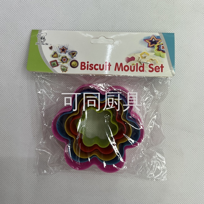 4pc塑料花型饼干模爱心五角星方形水果切花器创意翻糖饼干模具