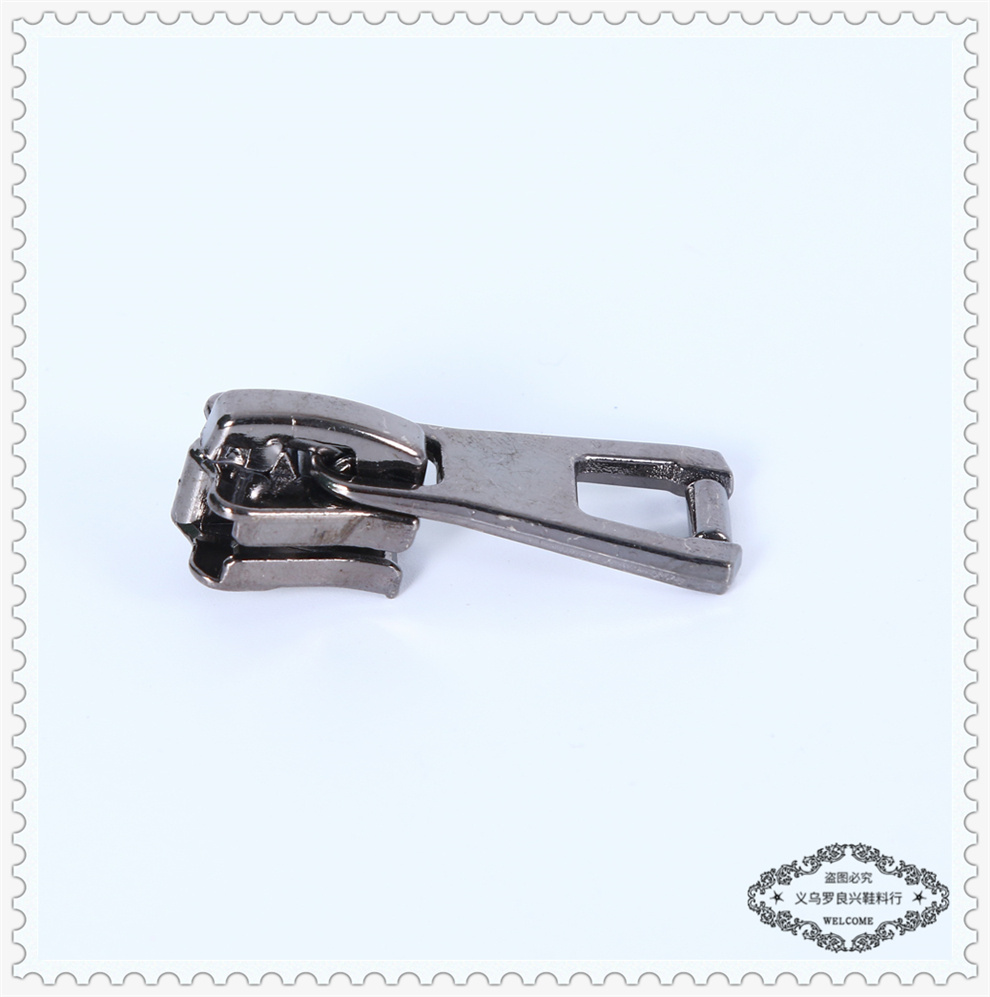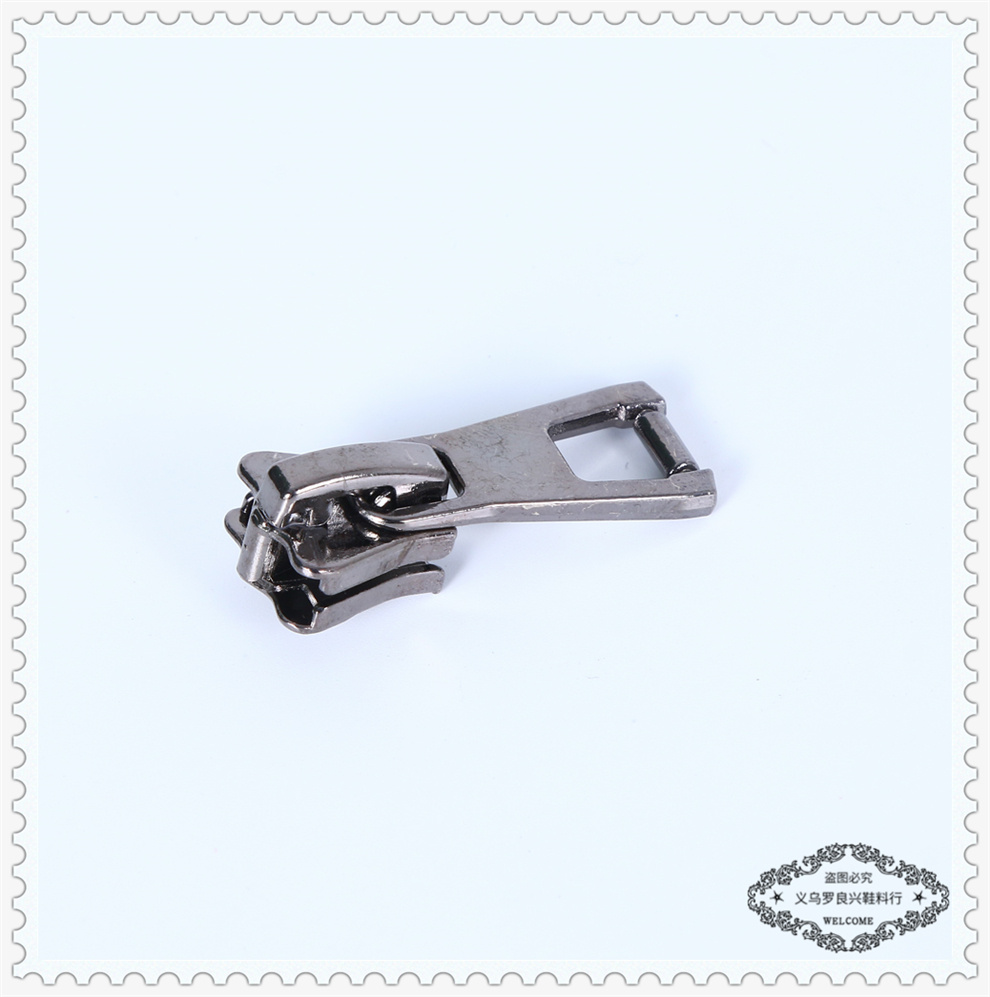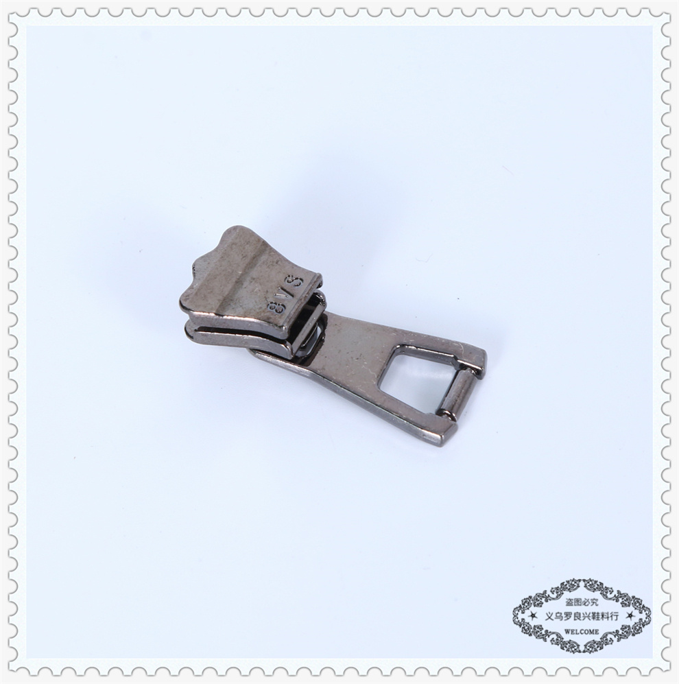 Product Name: Metal Alloy Zipper Pulls Yiwu Luo Liangxing Shoe Material Company offers a variety of shoe material zipper pulls in stock.