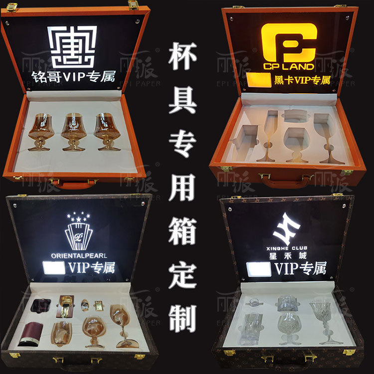 Bar Luminous Private Custom Wine Glass Box VIP Exclusive Cup Set Wine Box KTV VIP Member Wine Set Leather Case Set