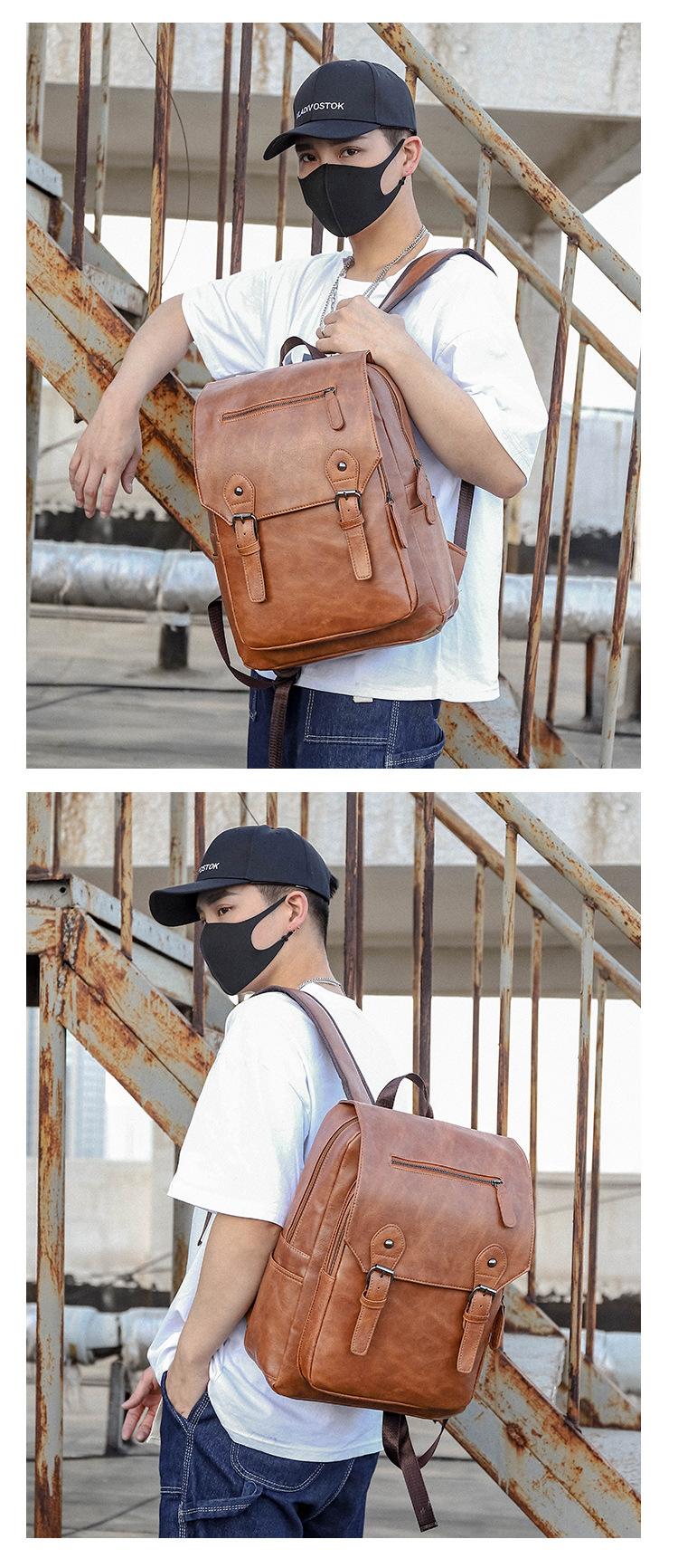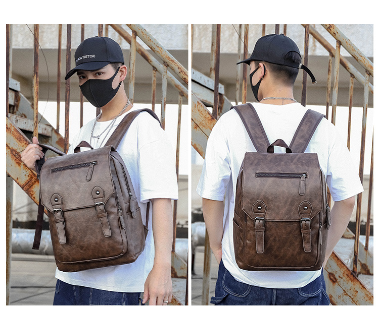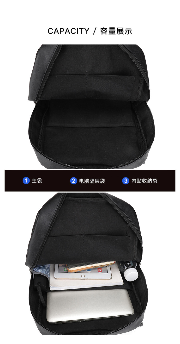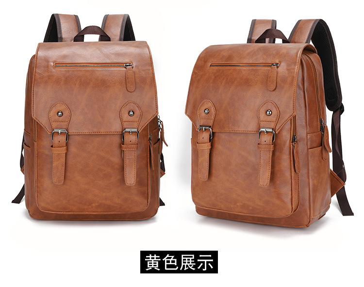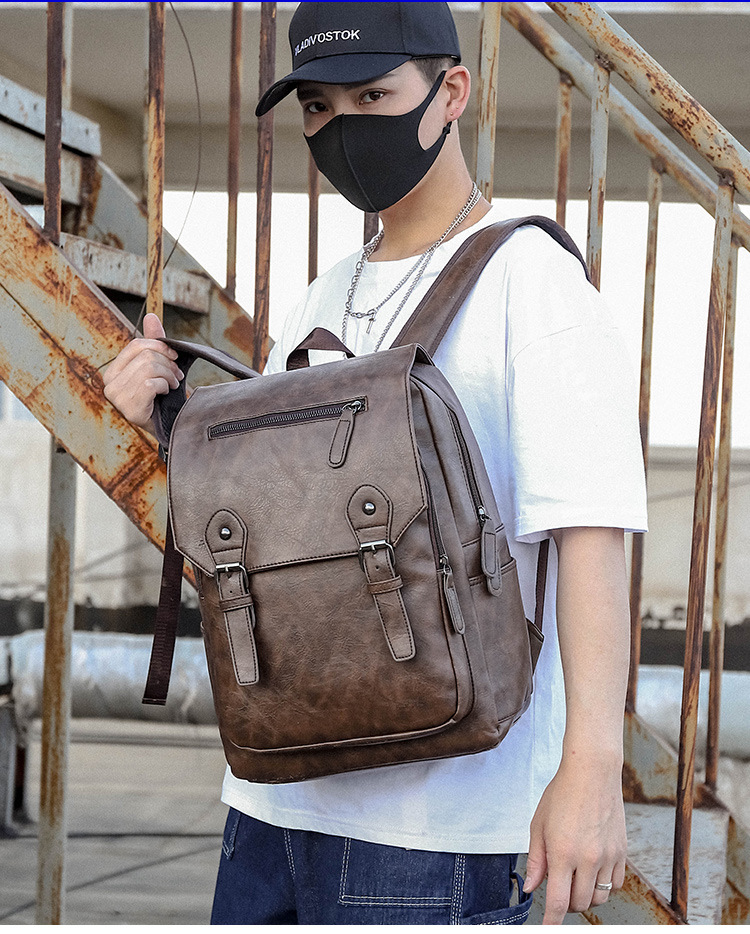 New Backpack Men's Korean-Style Fashion Leather Backpack Men's Simple Leisure Business Trip Business Waterproof Computer Backpack