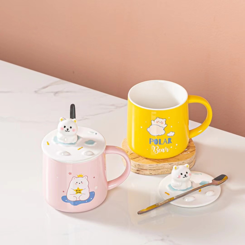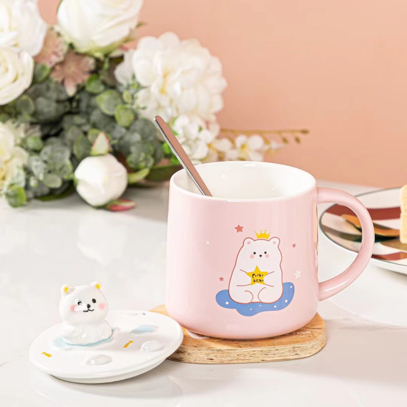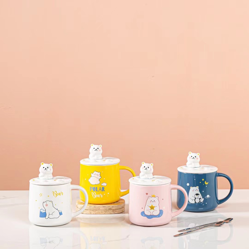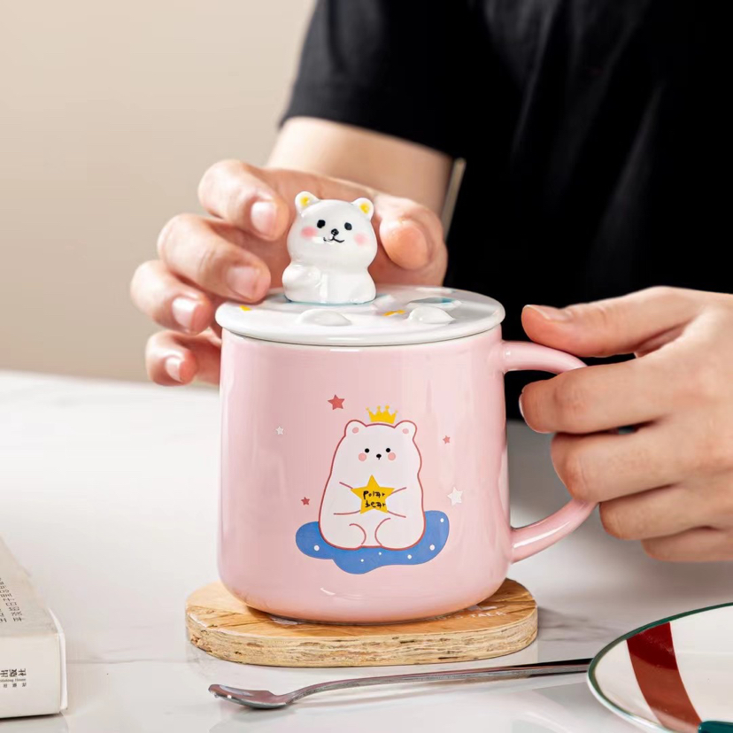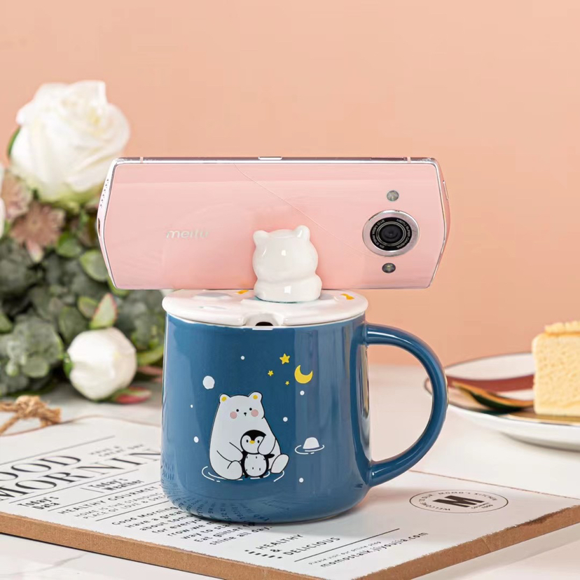 New Three-Dimensional Relief Cat Ceramic Cup Mobile Phone Holder Water Cup with Cover with Spoon Coffee Cup
