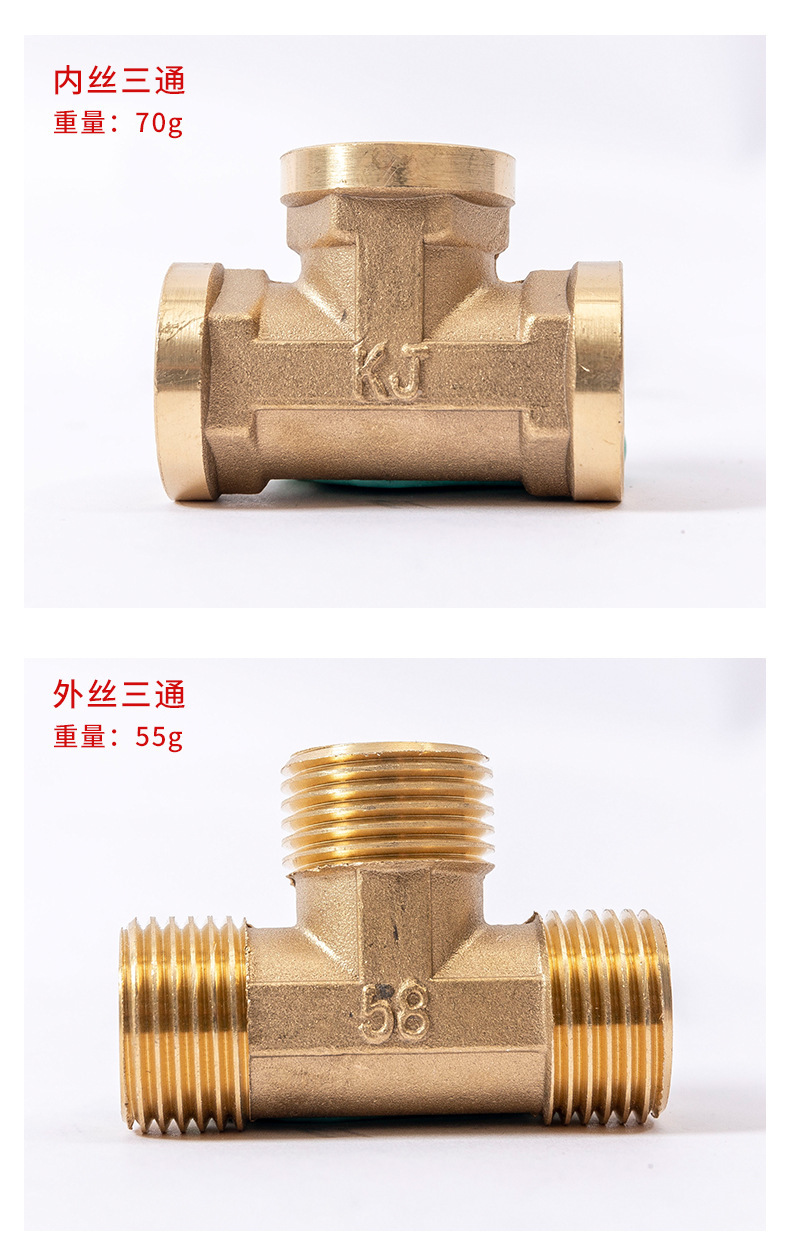 4 Points Thickened Copper Tee Joint Three Inner Wire One Inner Two Outer Three Outer Wire Gas Pipe Water Heater Water Pipe Accessories