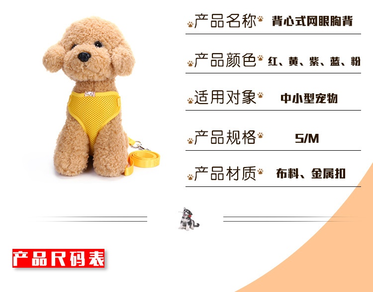 Factory Direct Sales in Stock Wholesale Dog Leash Protective Chest and Back Hand Holding Rope Plain Mesh Chest Strap 5 Colors Available