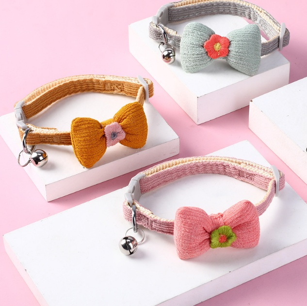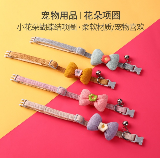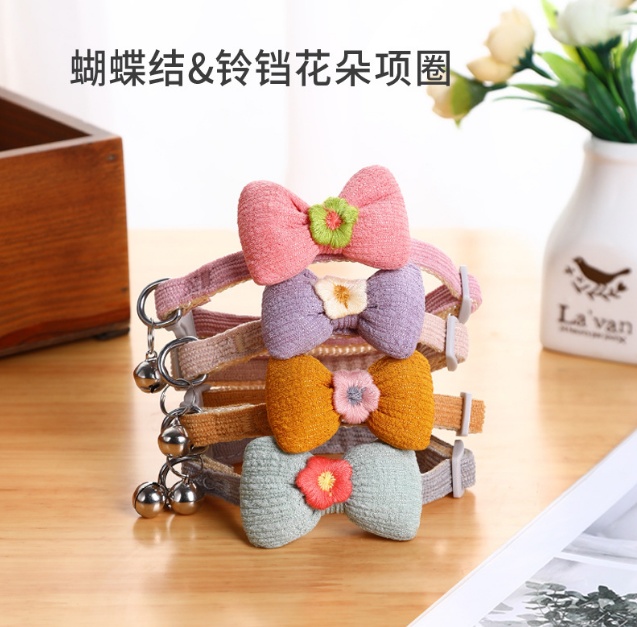 New Adjustable Braided Pet Collar Bow Decoration Cat Collar Little Flower Bell Cat Collar Wholesale