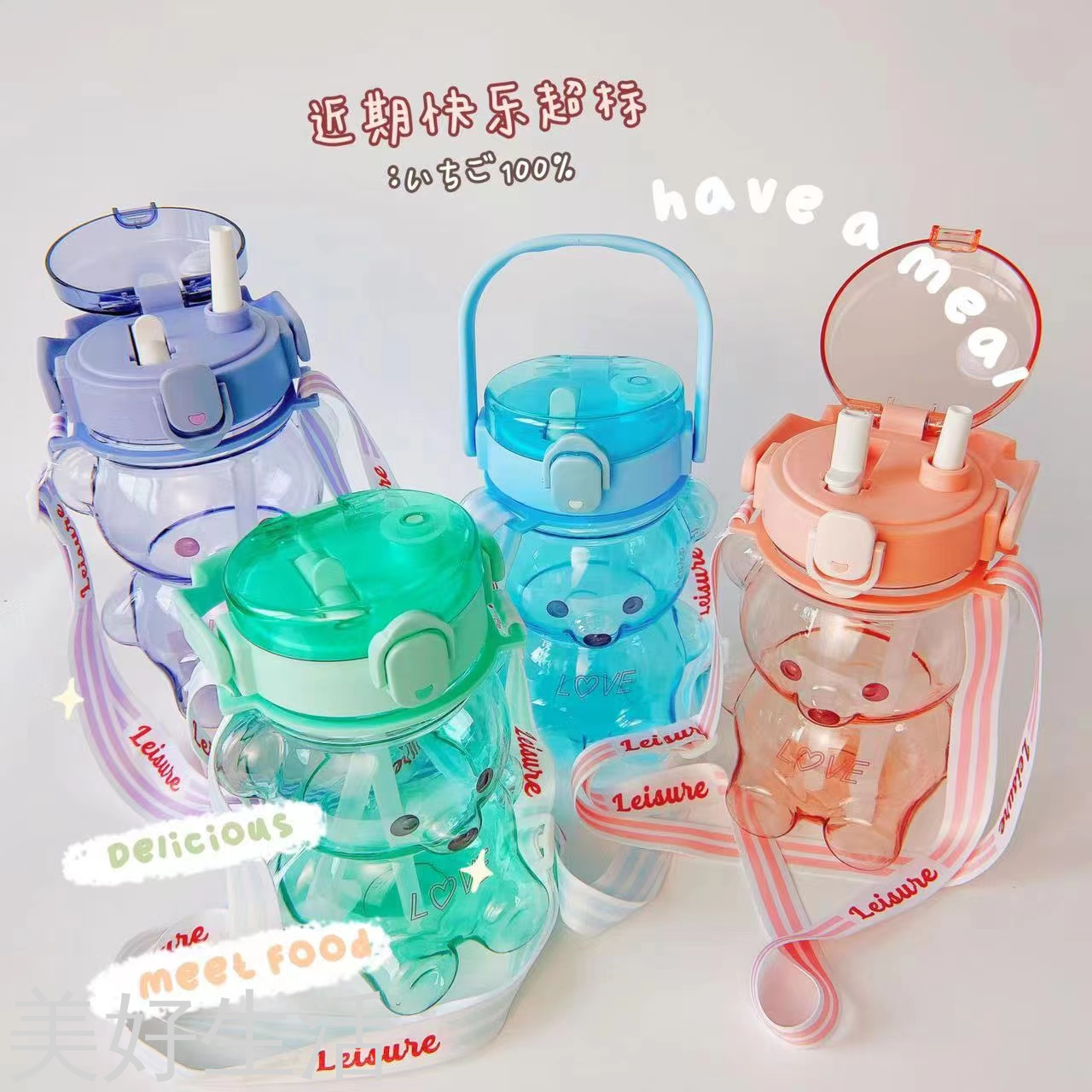 New Style Personalized Plastic Water Bottle, Square Cup & Bear Cup