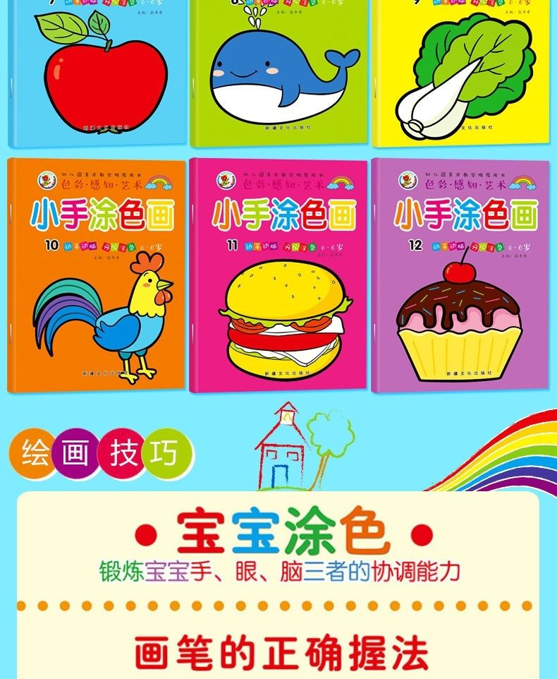 6 Baby Coloring Books +12 Color Crayons