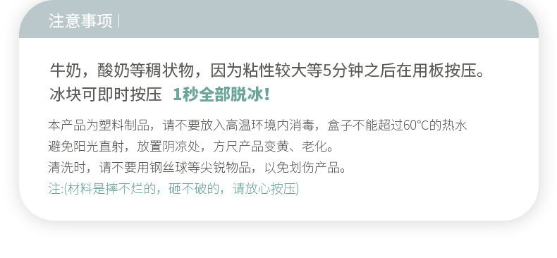 【Product Features】: Easy to demold, fast freezing, and ice is produced in one second after pressing.