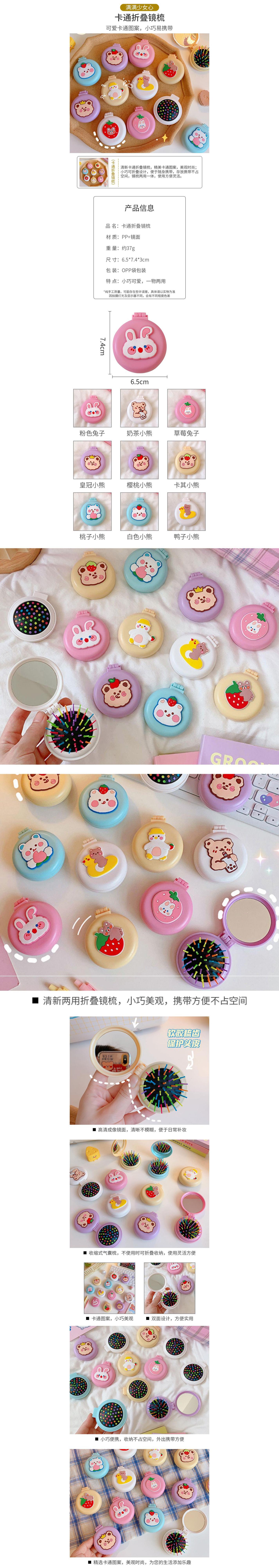 Wholesale Cartoon Folding Mirror and Comb Package Creative Portable Flip Airbag Comb Mirror Dual-Use Set Cute Portable Girl Heart
