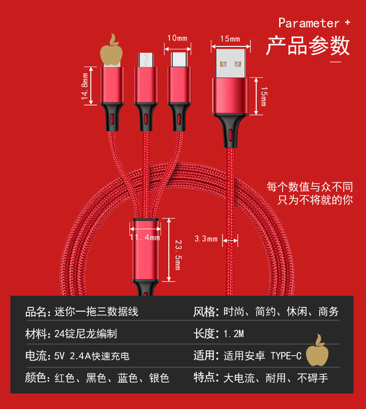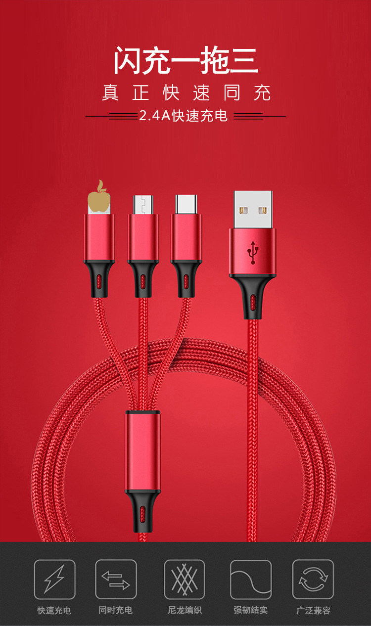 Nylon Three-in-one data cable