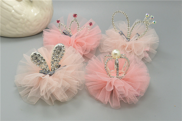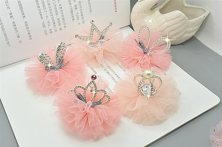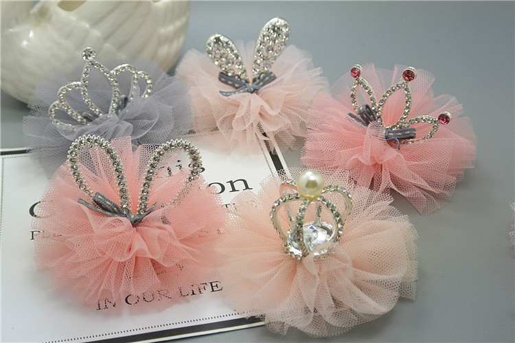 Latest mesh alloy rhinestone crown barrettes,