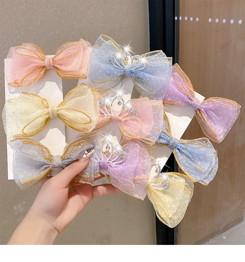 Korean Super Fairy Three-Dimensional Bow Barrettes Children's Hair Accessories Girl's Little Princess Crown Top Clip Hairpin Cute Headwear