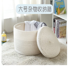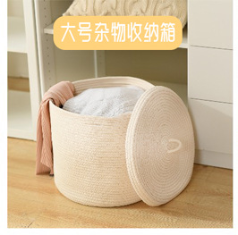 Storage Bucket with Lid Clothes Toy Storage Basket Woven Cotton String Laundry Basket Foldable Source Factory Tmall Signature