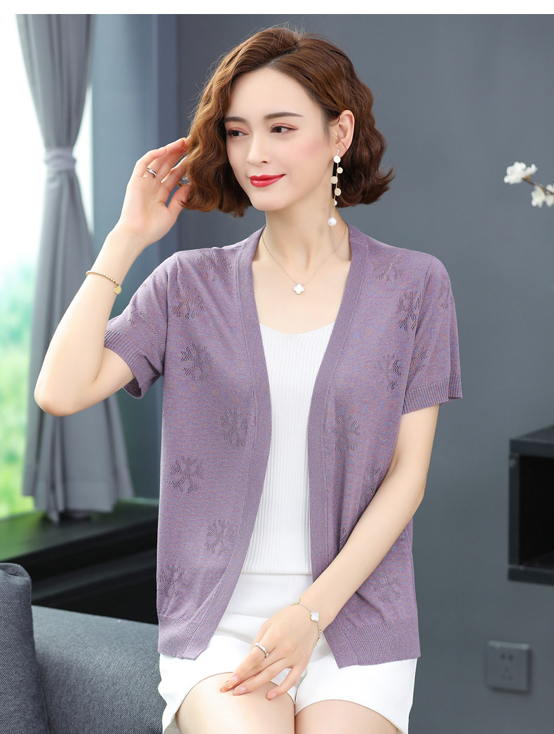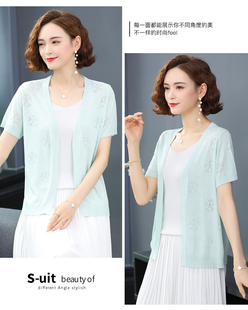 Knitted Cardigan Women's Short Ice Silk Short Sleeve Waistcoat Thin Small Coat Hollow Shirt Sun Protection Clothing Shawl Summer Matching Skirt