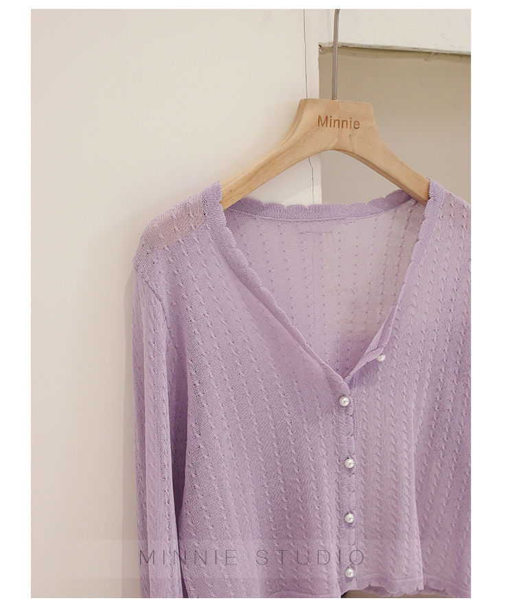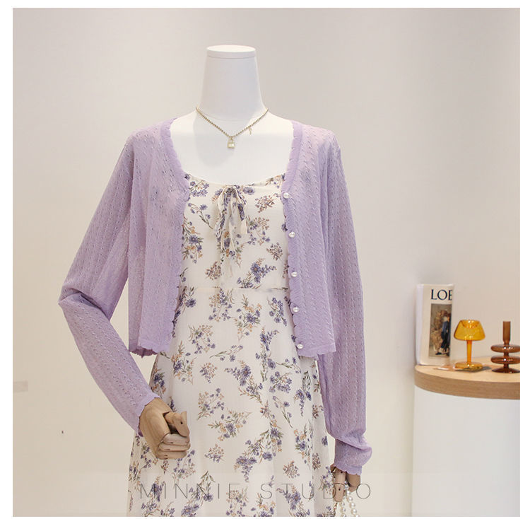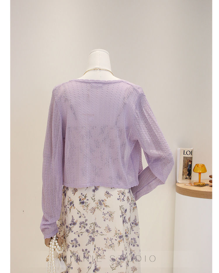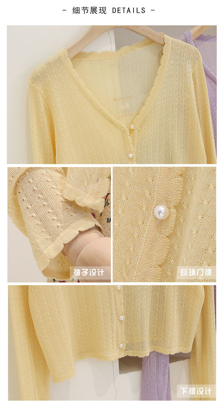 Summer ice silk knitted cardigan thin women's short cape outer V-neck top long sleeve air conditioning sun protection coat for women