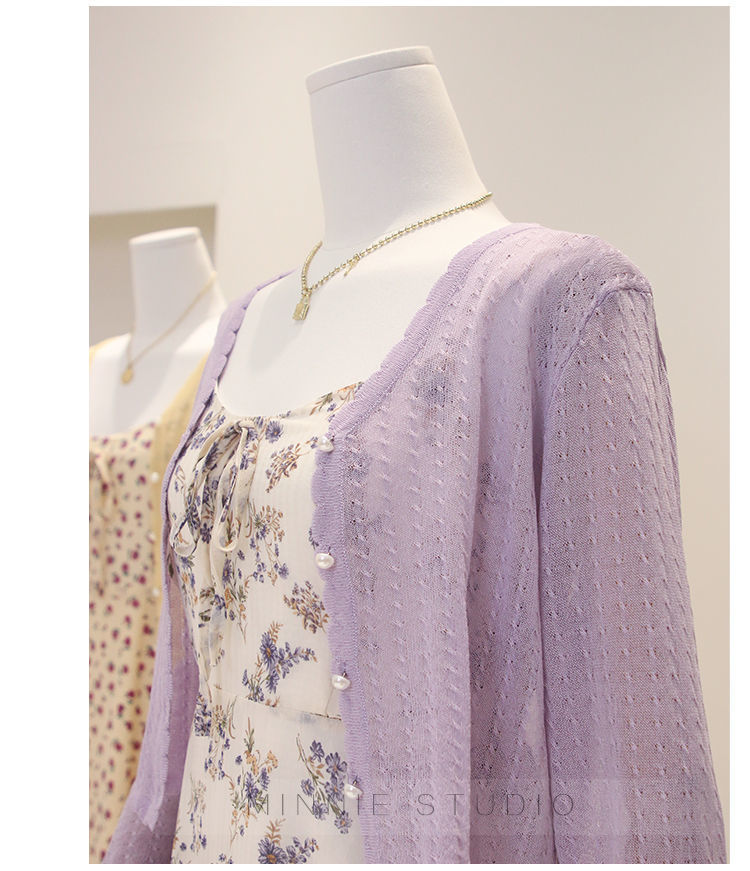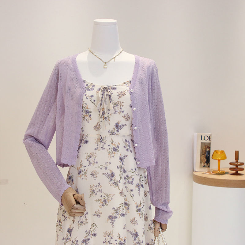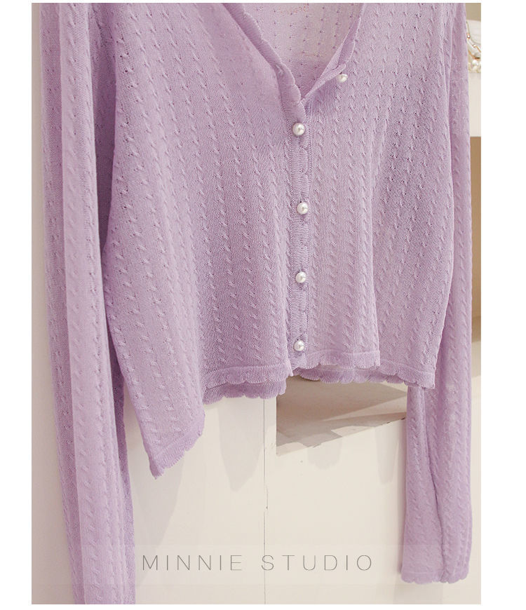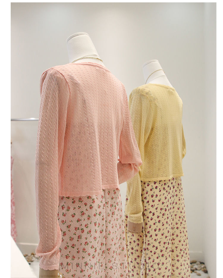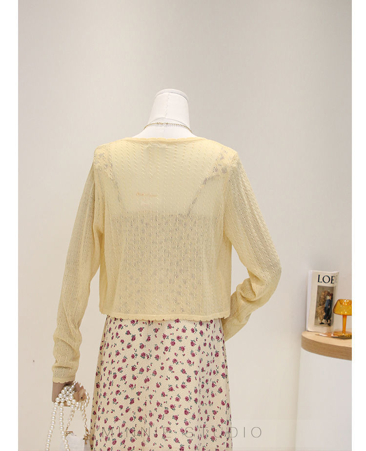 Summer ice silk knitted cardigan thin women's short cape outer V-neck top long sleeve air conditioning sun protection coat for women