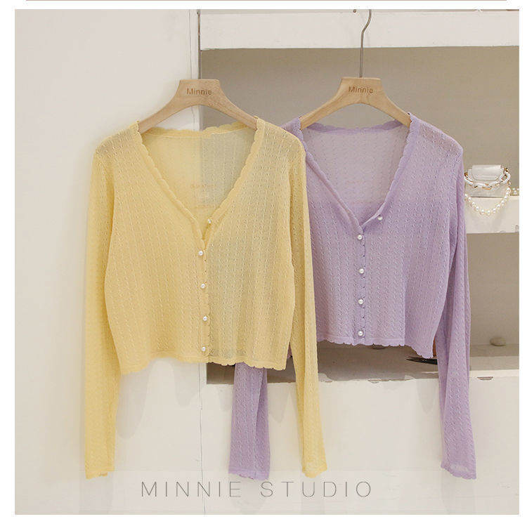 Summer Ice Silk Knitted Cardigan Thin Women's Short Cape Outer V-neck Top Long Sleeve Air Conditioning Sun Protection Coat for Women