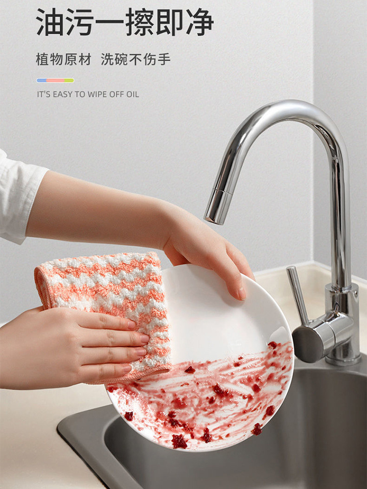 Kitchen Rag Dishwashing Oil-Free Lint-Free Wet and Dry Dual-Use Thick Coral Fleece Cleaning Towel Table Cleaning Easy to Clean