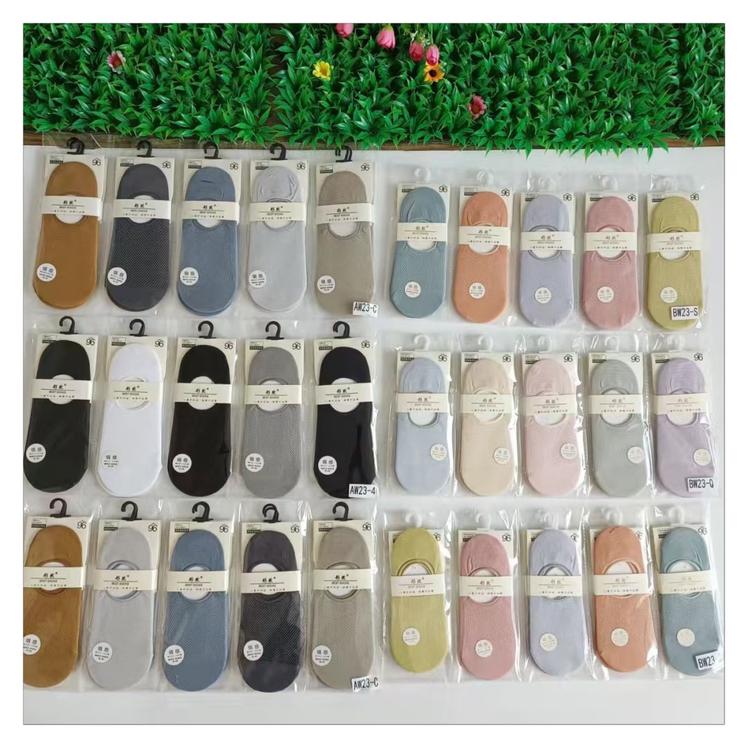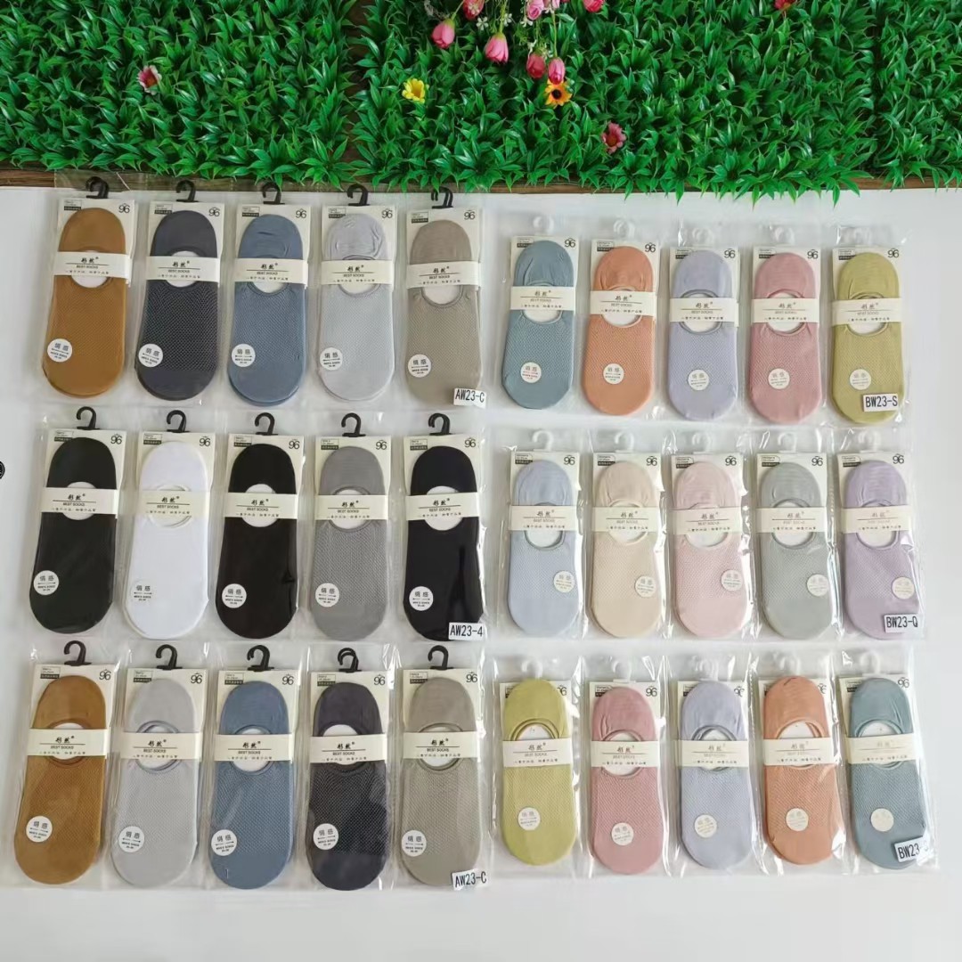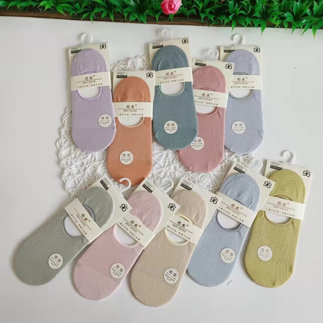 Silk mesh round mouth Women's invisible boat socks a pack of 10 pairs of matching color heel silicone tight微信图片_20220306221519