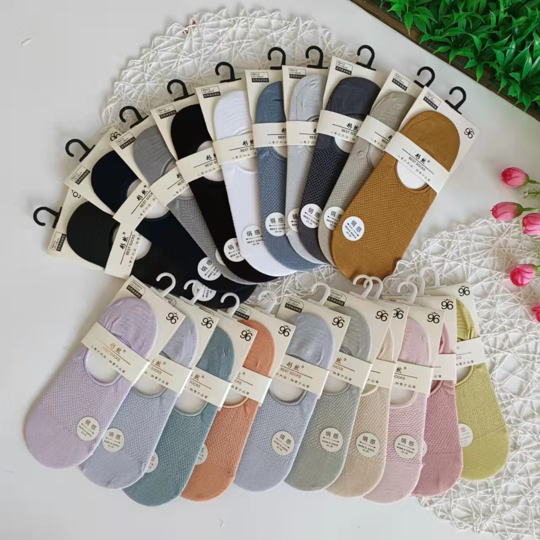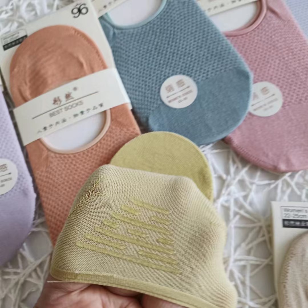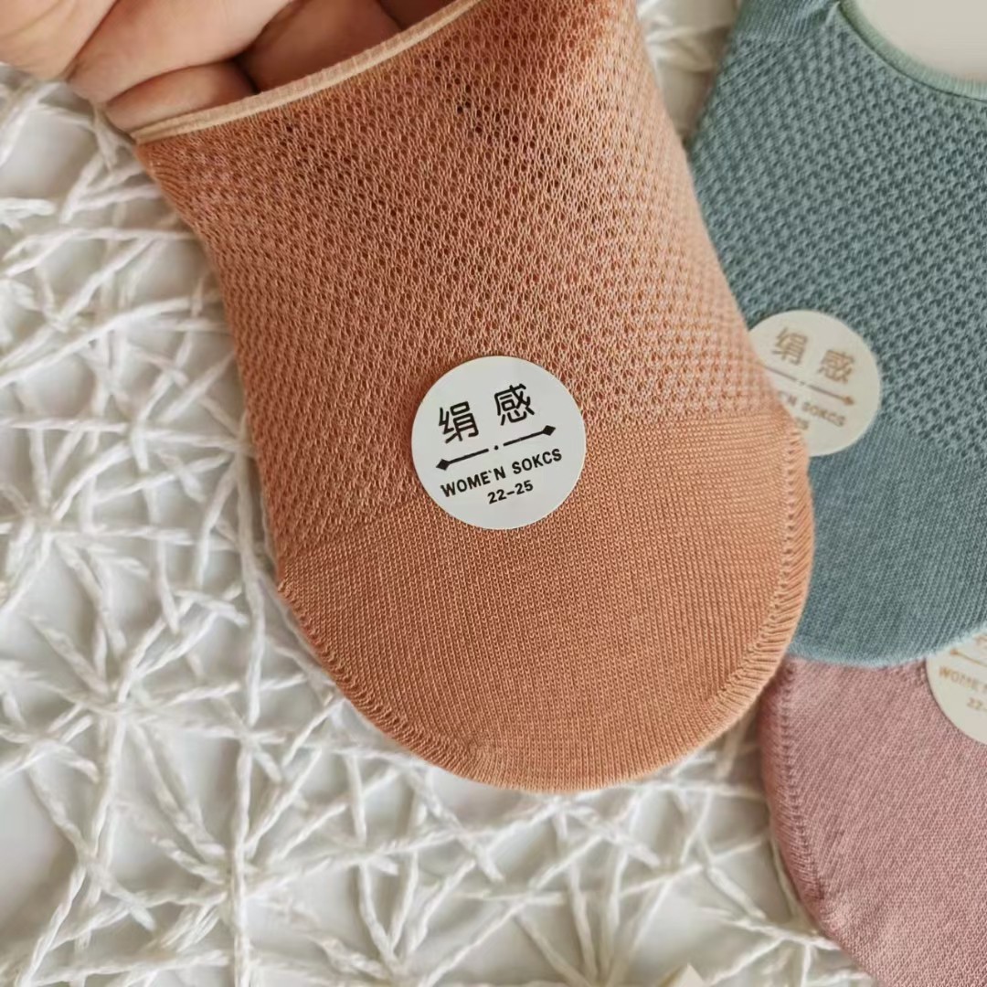 Silk mesh round mouth Women's invisible boat socks a pack of 10 pairs of matching color heel silicone tight微信图片_20220306221519