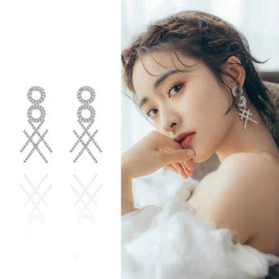 2019 New Geometric Square Earrings Long Rhinestone-Encrusted Painting Oil Personalized Earrings Korean Graceful and Fashionable Small Jewelry for Women