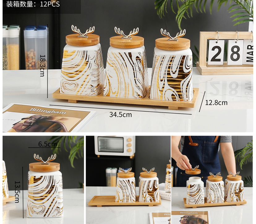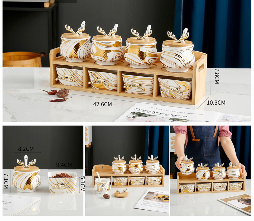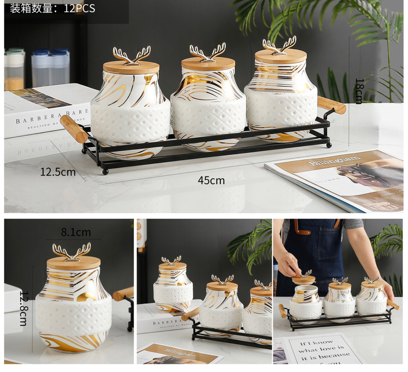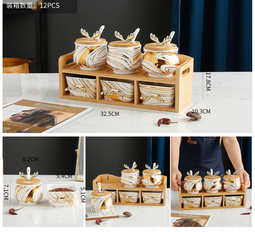 New Antlers Seasoning Jar Bamboo Base Home Kitchen Seasoning Bottle