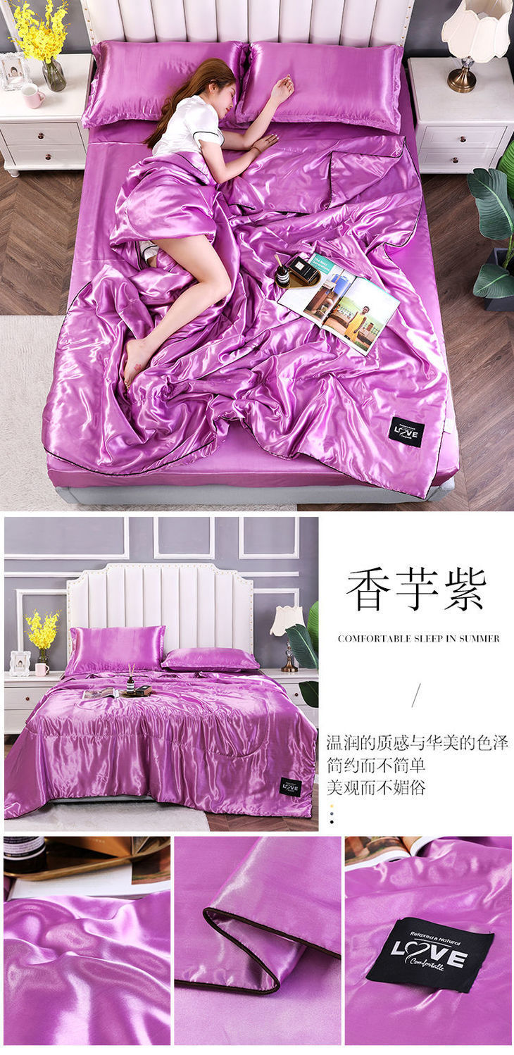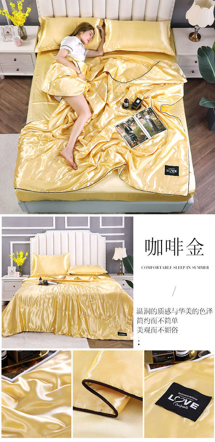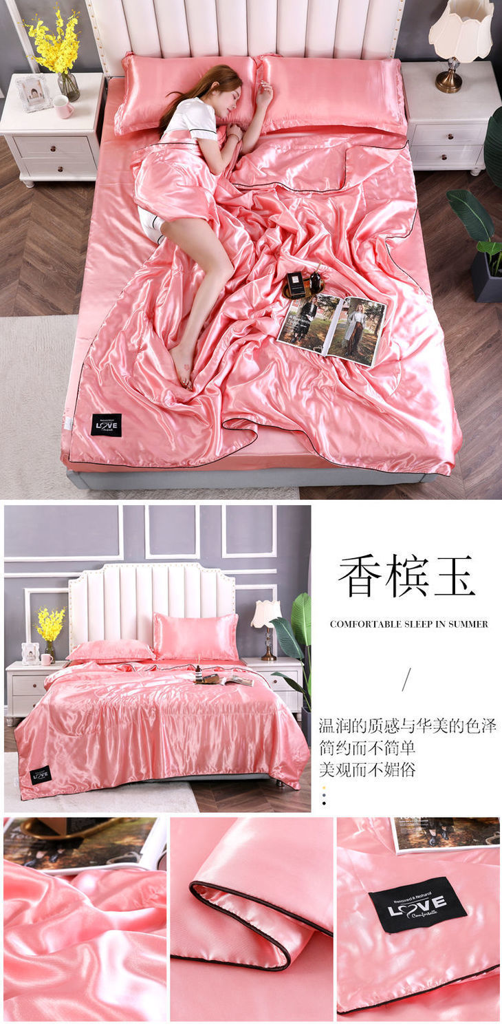 Summer Double-Sided Ice Silk Summer Quilt Airable Cover Summer Blanket Four-Piece Single Double Washable Tencel Quilt