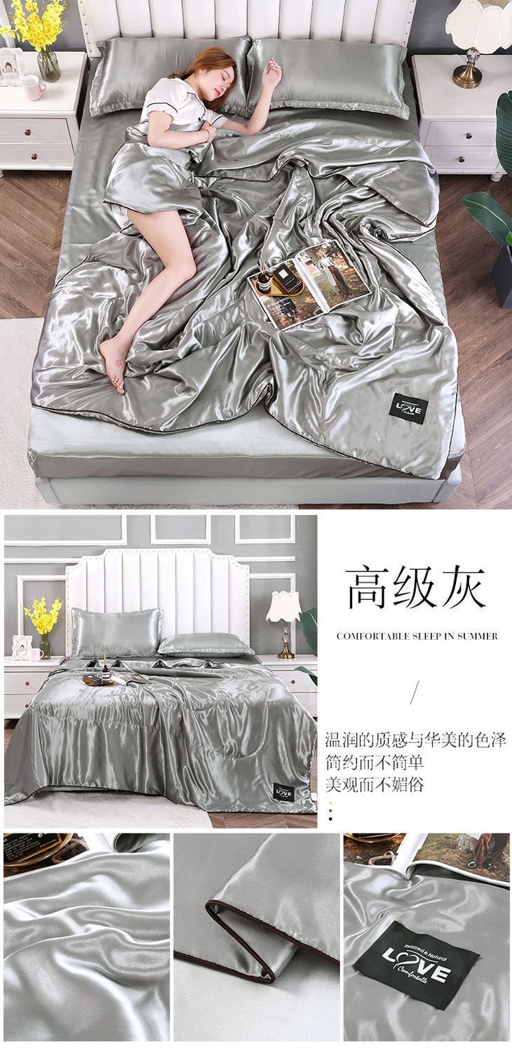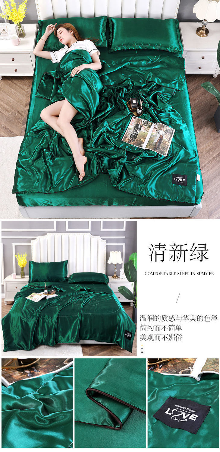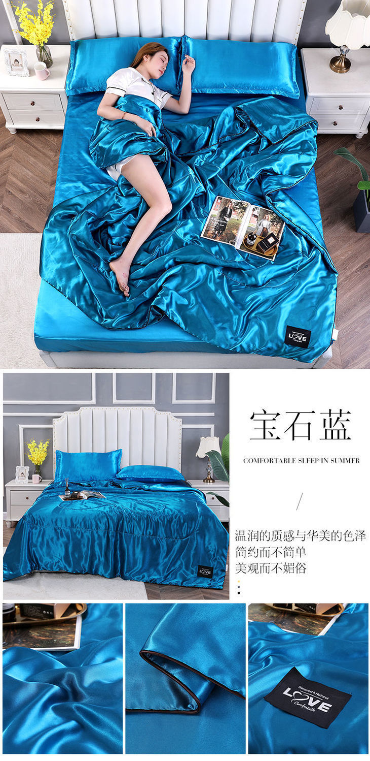 Summer Double-Sided Ice Silk Summer Quilt Airable Cover Summer Blanket Four-Piece Single Double Washable Tencel Quilt