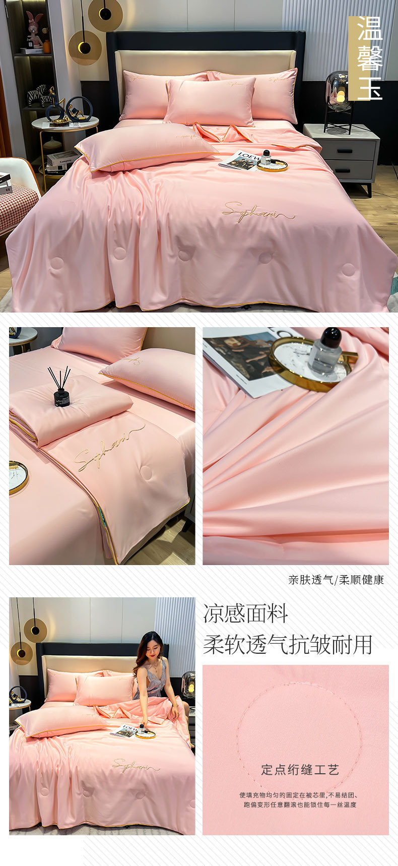 2022 New Washed Ice Silk Summer Blanket Four-Piece Set Thin Duvet Airable Cover Popular
