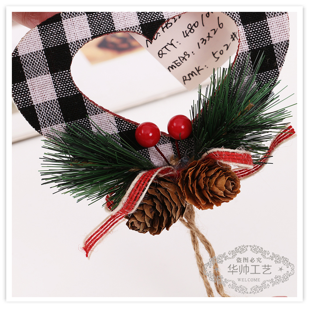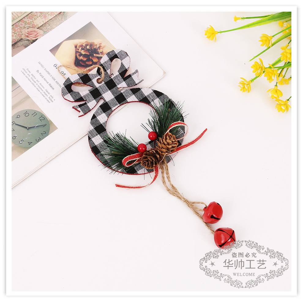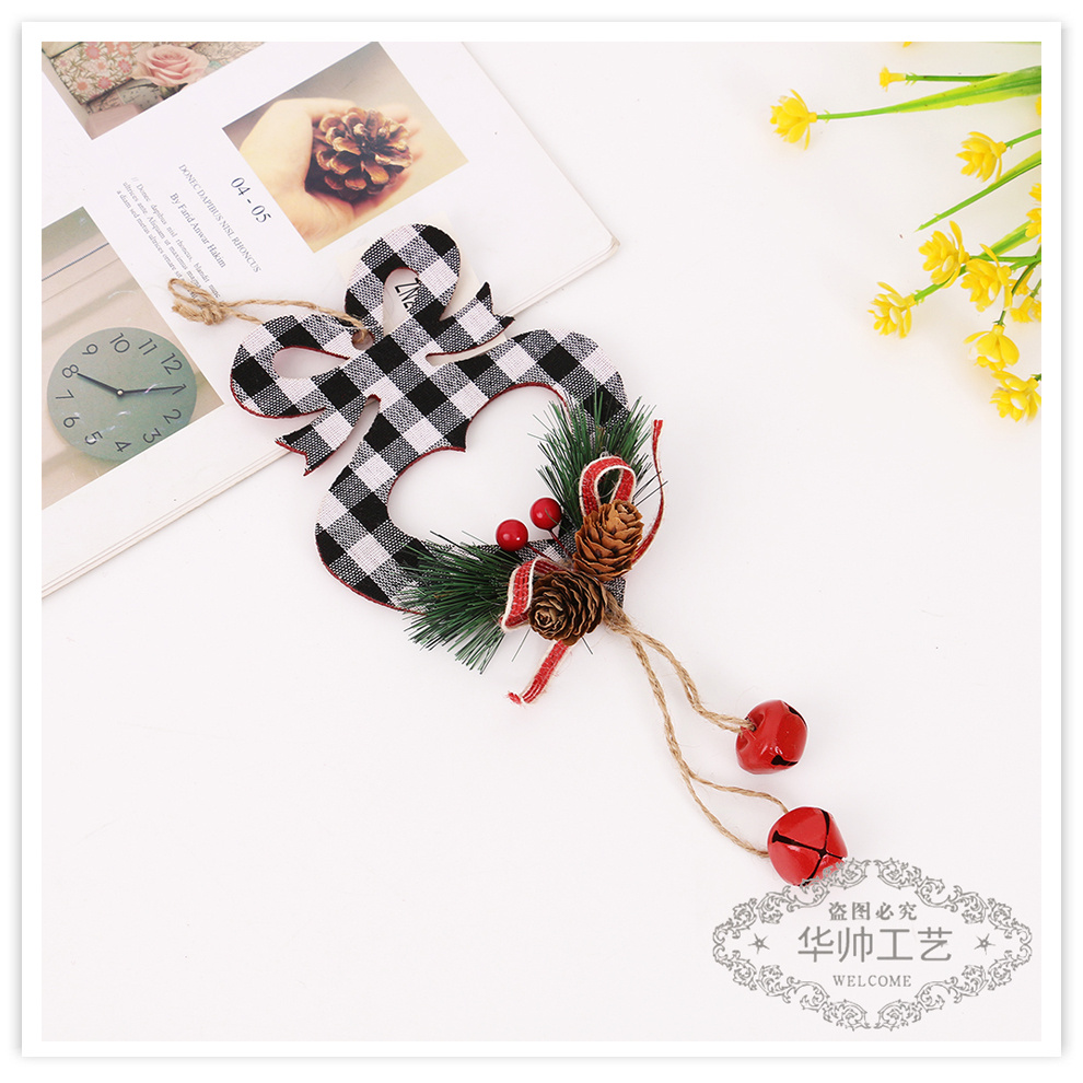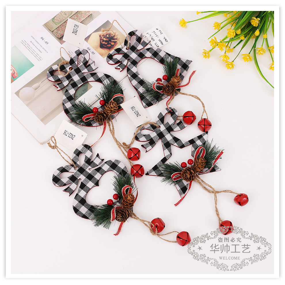 fabric plaid pine cone bell pendant christmas decorations five-pointed star holiday christmas tree decoration pendant wholesale