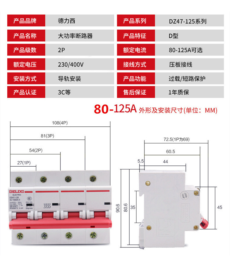 DZ47-125 D型 3P 80A