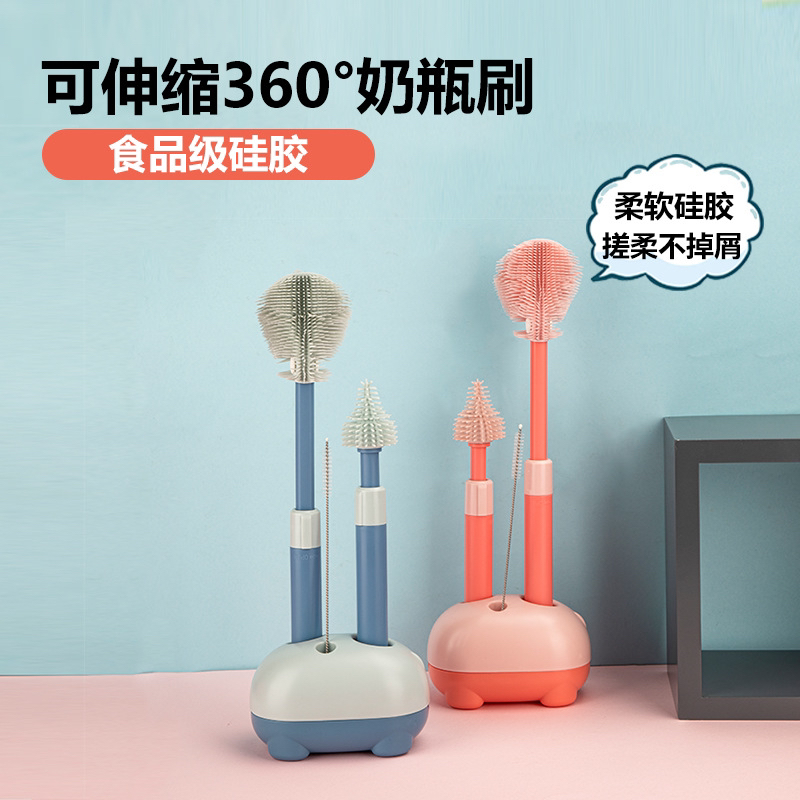 Silicone Baby Bottle Brush Artifact 360-Degree Rotating Baby Pacifier Brush Straw Brush Cleaning Set