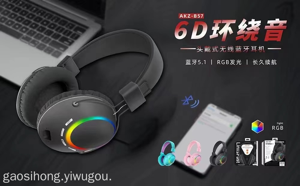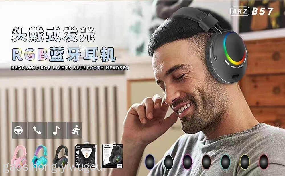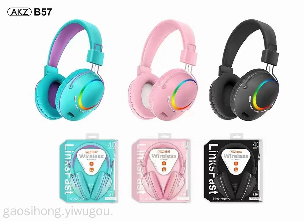 AKZ-B57 Folding Bluetooth Cross-Border New Arrival Headset Sports Headset 5.0led Colorful Wireless Bluetooth Headset