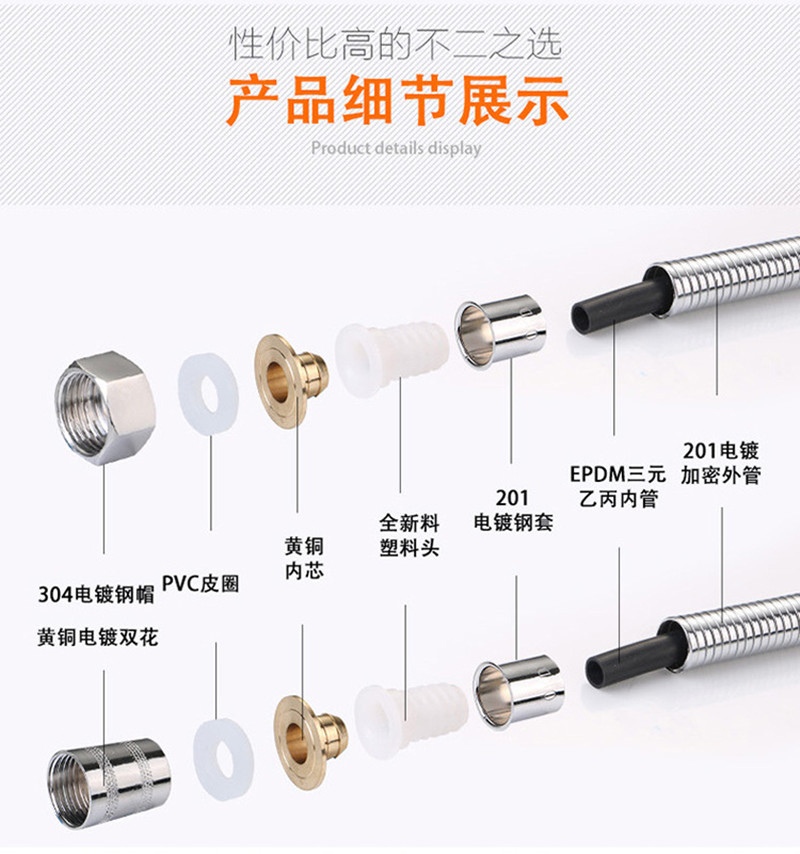 About Product:Stainless Steel Electroplating Shower Tube, Steel Cap, Copper Core. 1.2 M, 1.5 M, 2 M......
