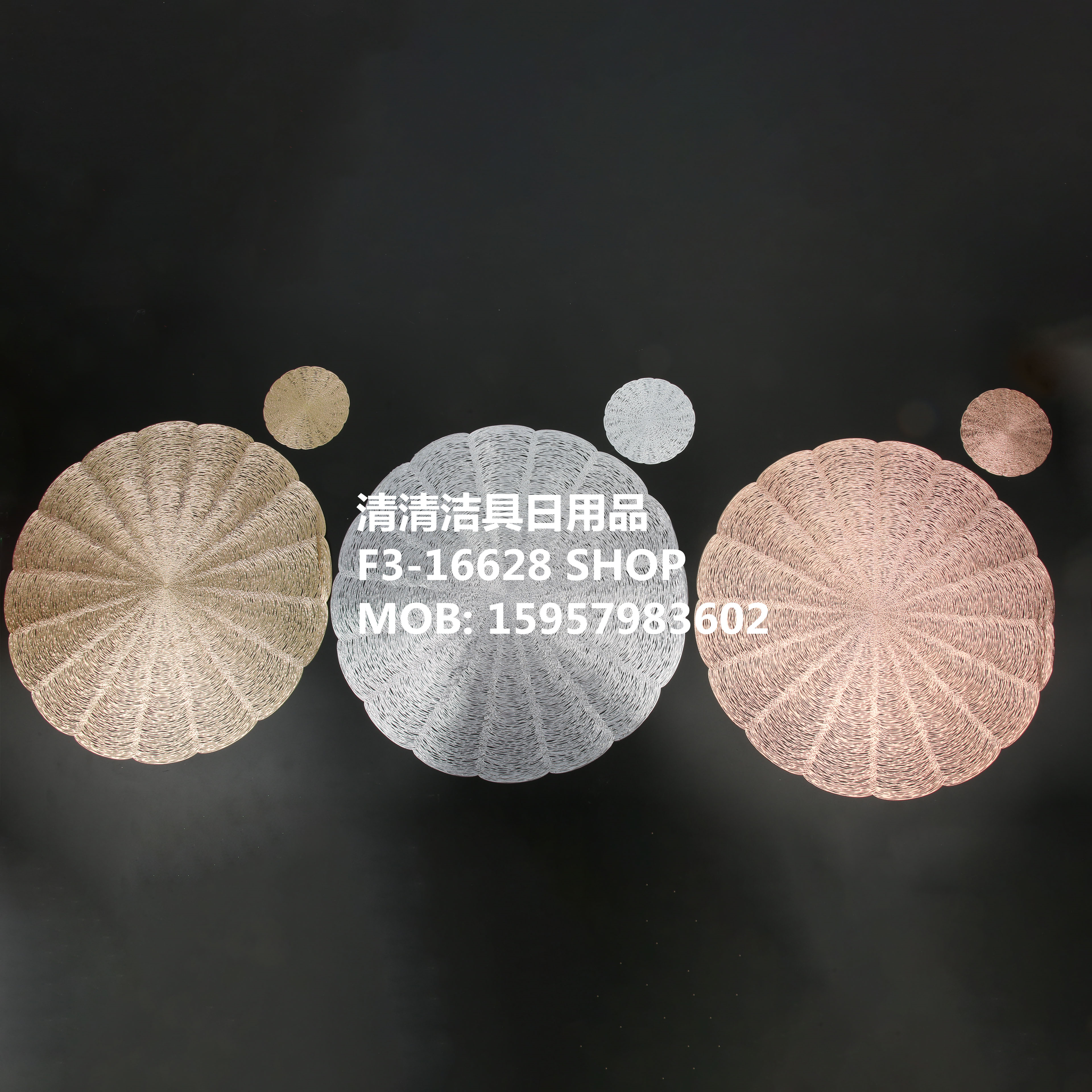 Placemat cup mat PVC placemat European and American placemat, unusual placemat, plastic placemat, gold and silver placemat. Please inquire for the price.
