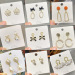 bow diamond stud earrings silver needle