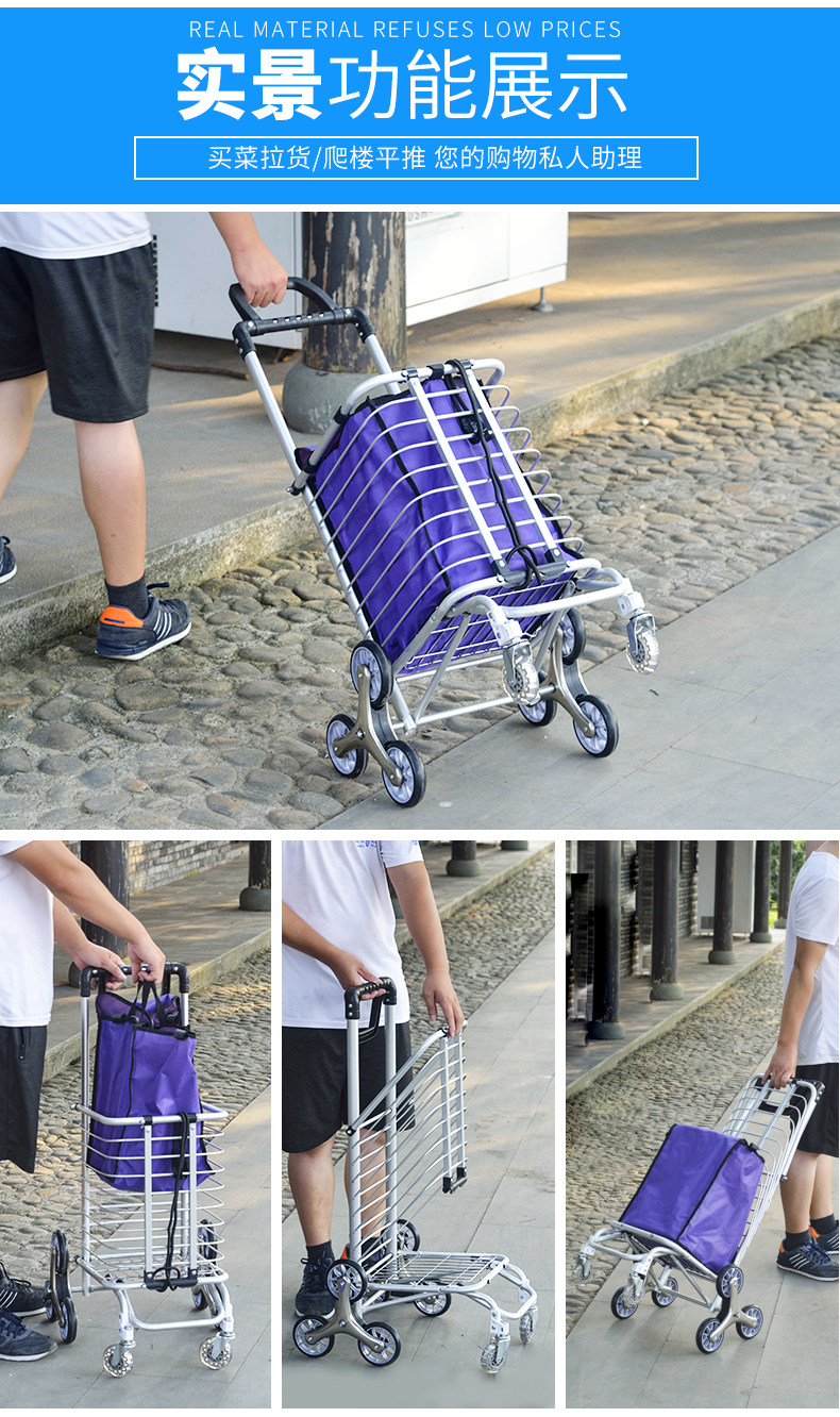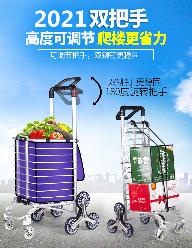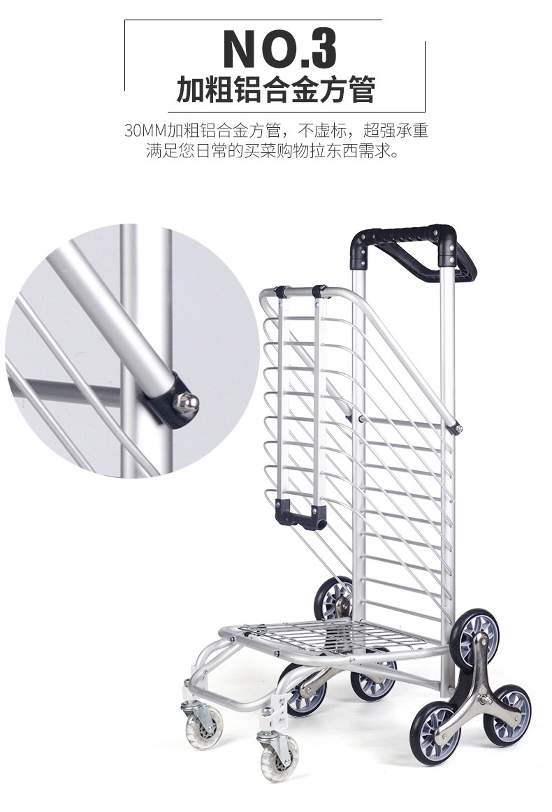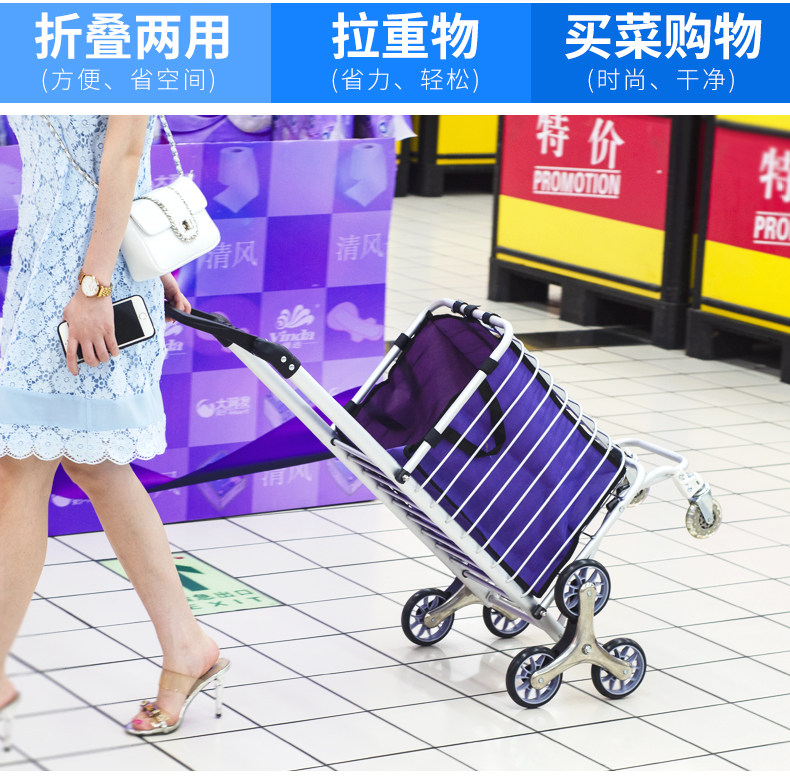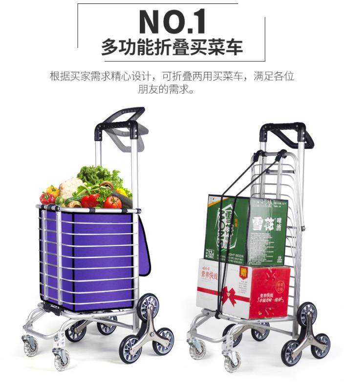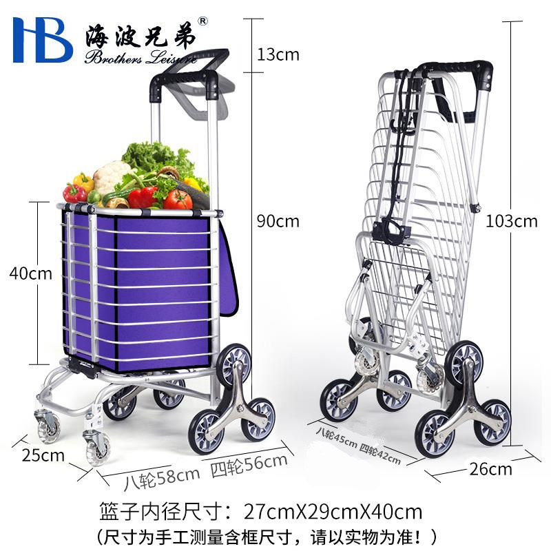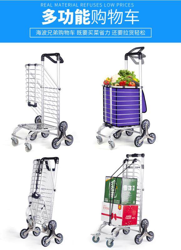 Folding Shopping Cart Trolley Internet Celebrity Aluminum Frame Portable Trolley Household Elderly Four-Wheel Six-Eight-Wheel Climbing Shopping Cart