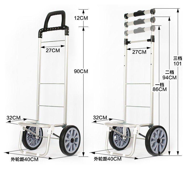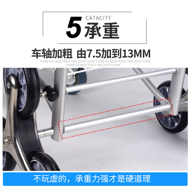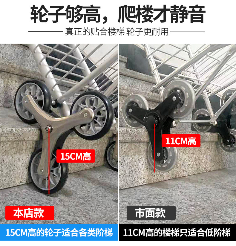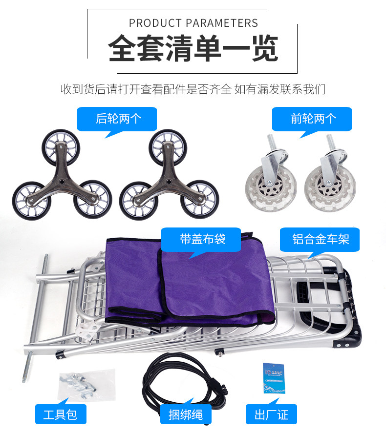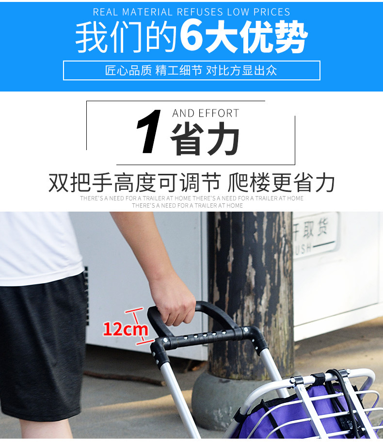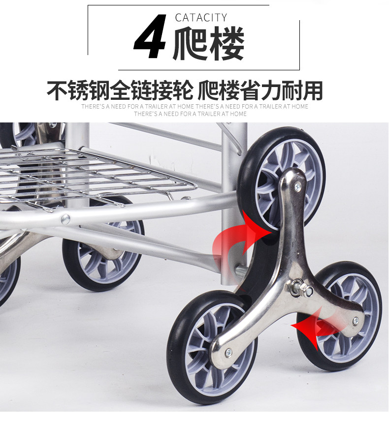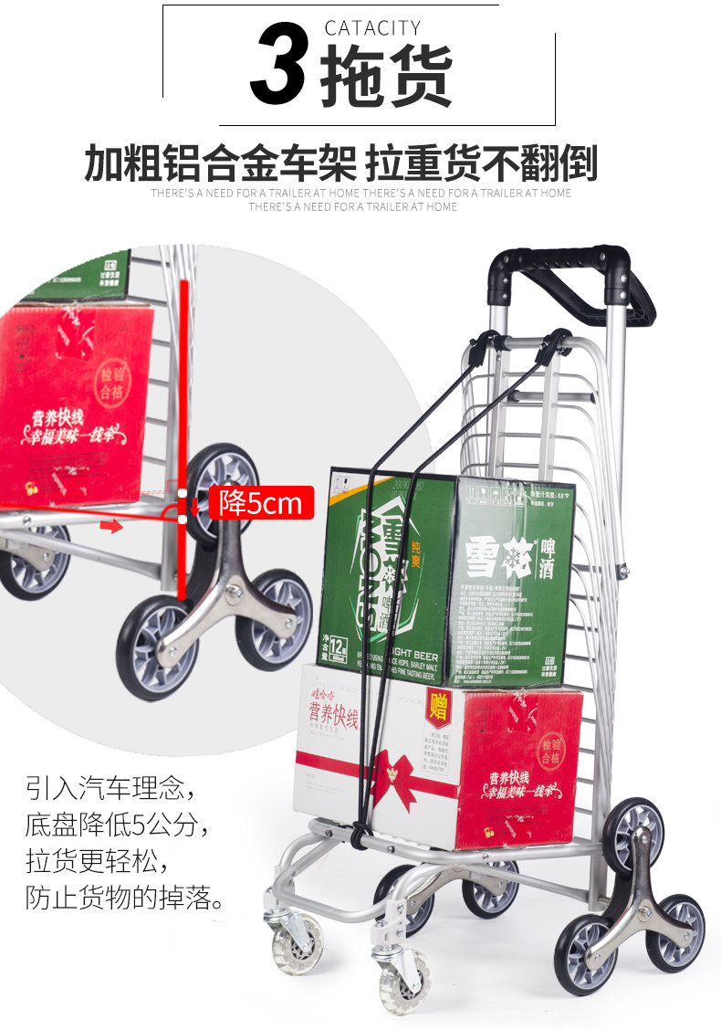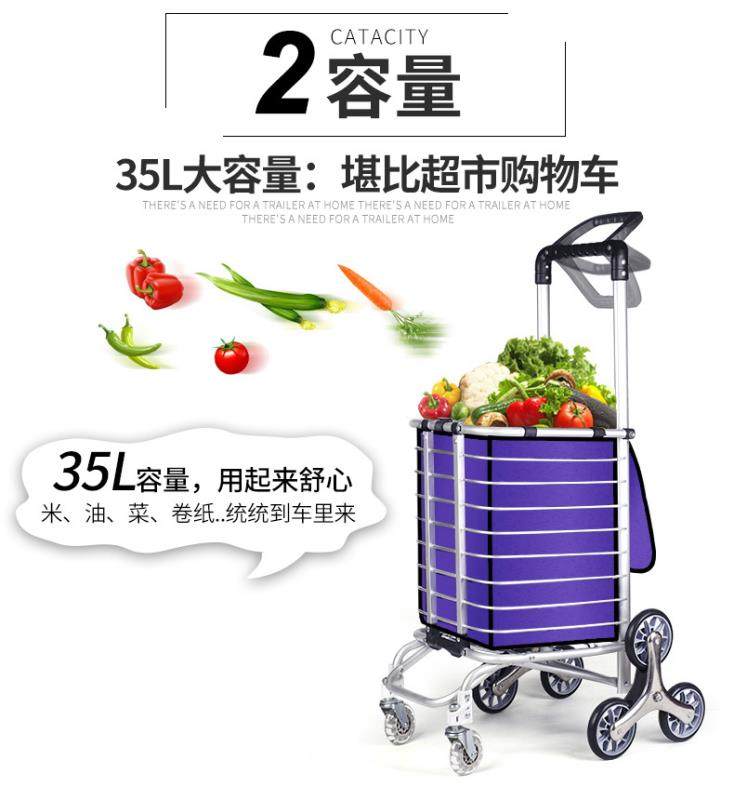 Folding Shopping Cart Trolley Internet Celebrity Aluminum Frame Portable Trolley Household Elderly Four-Wheel Six-Eight-Wheel Climbing Shopping Cart
