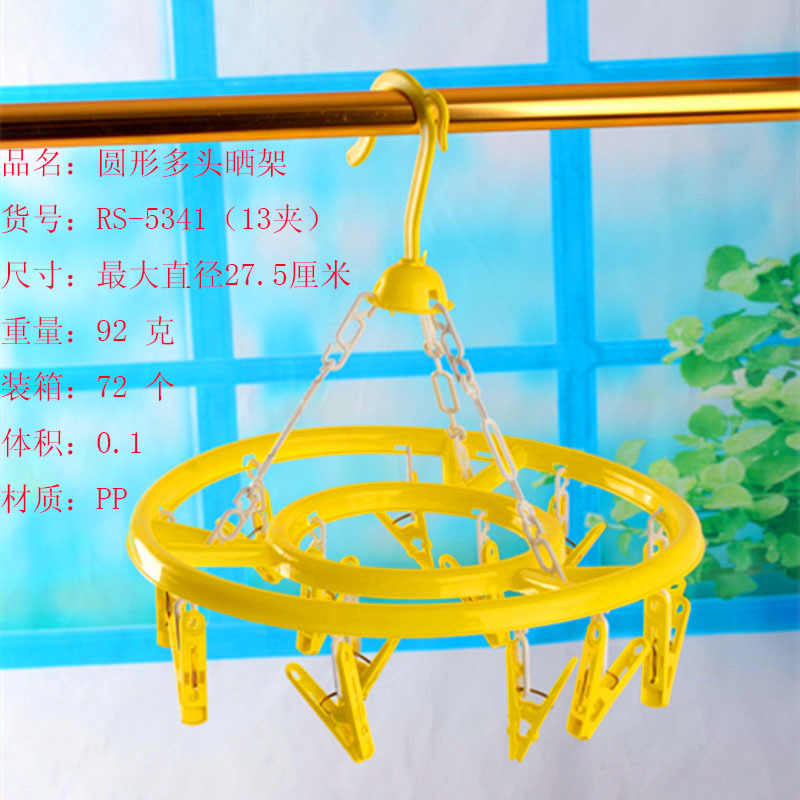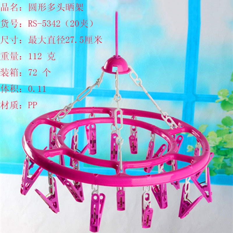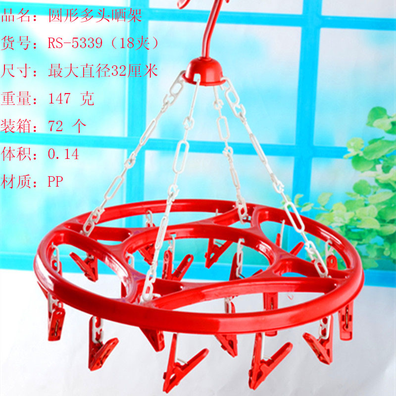 The 13-clip, 18-clip, and 20-clip circular drying racks/multifunctional underwear and socks drying racks/multi-head drying racks are made of high-quality PP plastic. They come with 13/18/20 large clips, which can be stored, are elegant and beautiful, stylish and simple, with windproof and anti-skid properties. The drying rack is connected to the rotating hook by a chain-shaped link, making it more beautiful and durable. The rotatable windproof board with 360-degree hooks can be hung on poles with a diameter of 3-6 cm, and the windproof property prevents the drying rack from falling easily. The drying rack comes with 13/18/20 powerful spring clips, which can firmly hold any item, suitable for drying clothes, socks, underwear, curtains, shoe pads, and other small items. When not in use, the drying rack can be stored, which is convenient and does not take up more space.