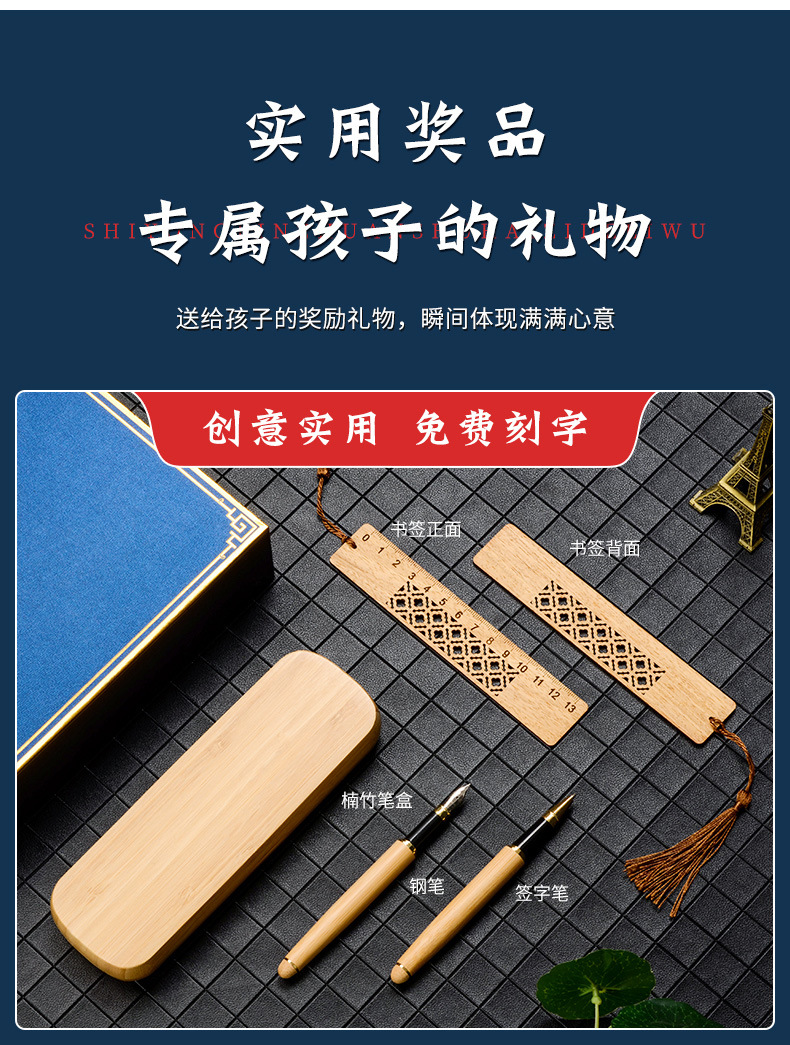 bamboo pencil case + red ebony pen + signature pen + bookmark + refill + pen bag/blue gift box