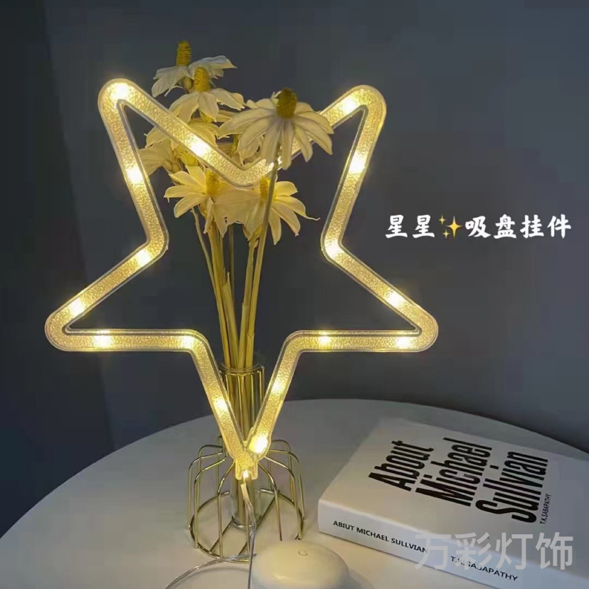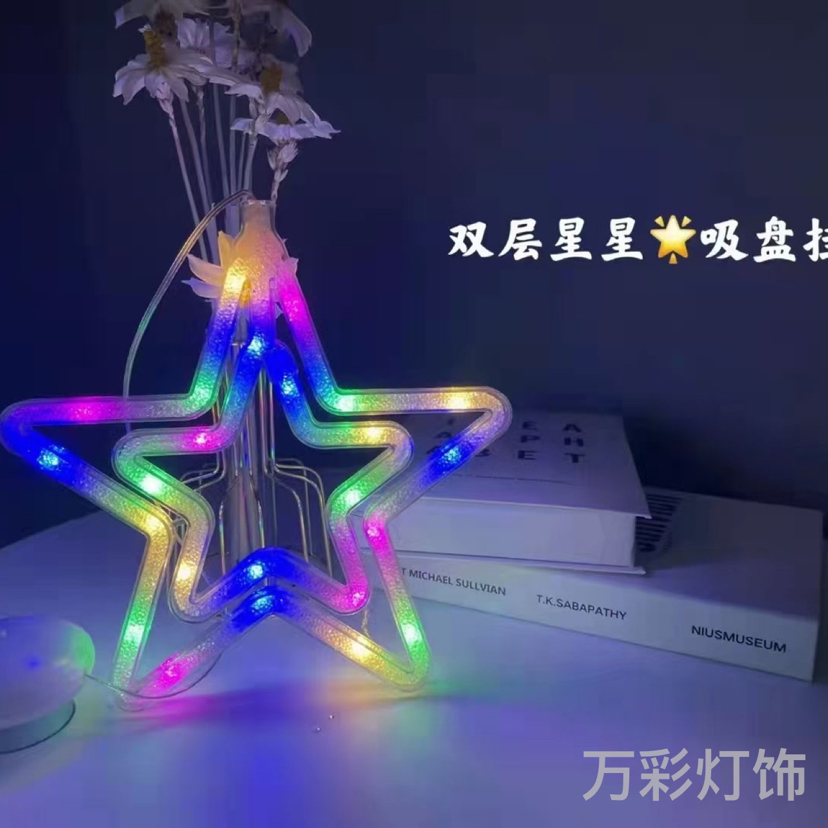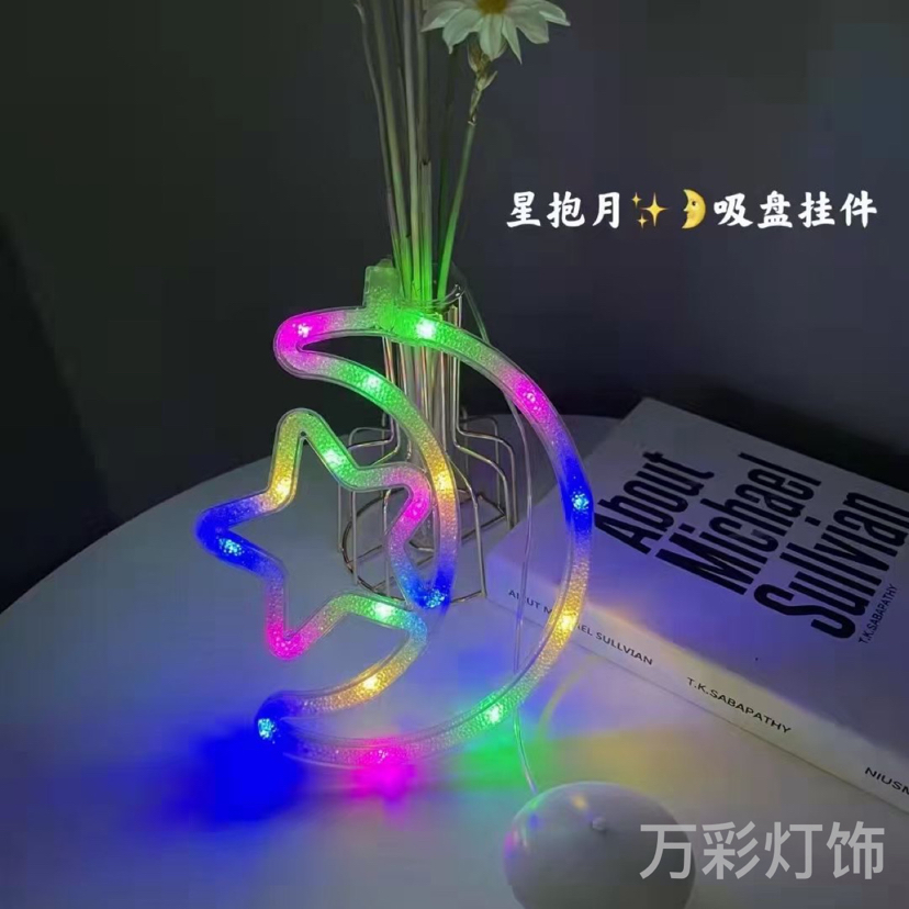 cross-border new led colored lamp bedroom and room decoration hanging lamp 3d holiday atmosphere hanging decoration sucker battery lamp
