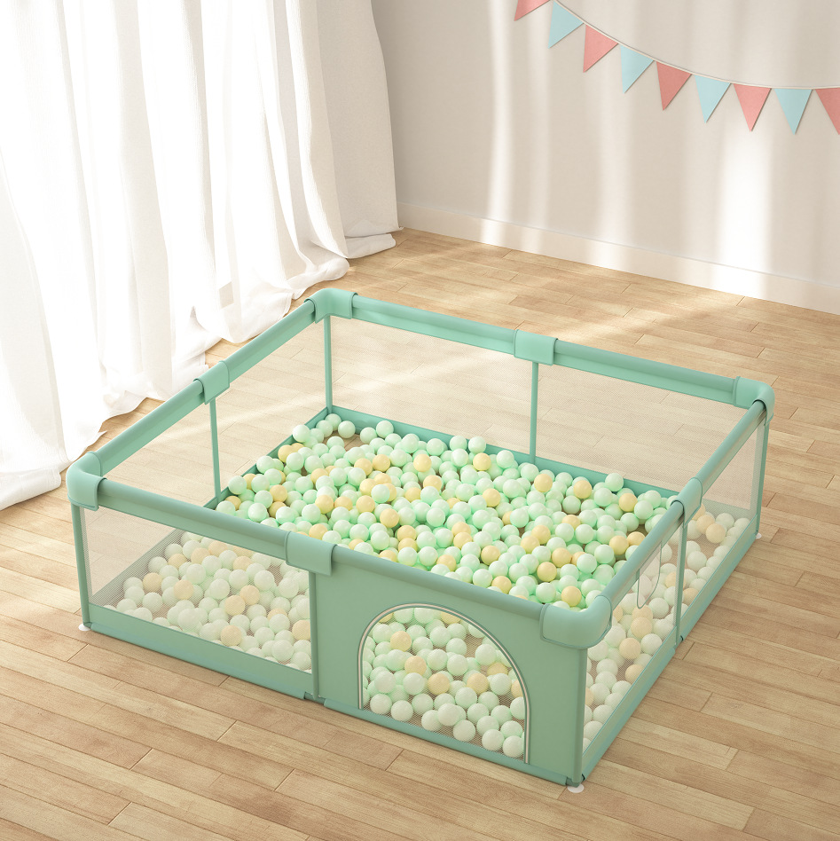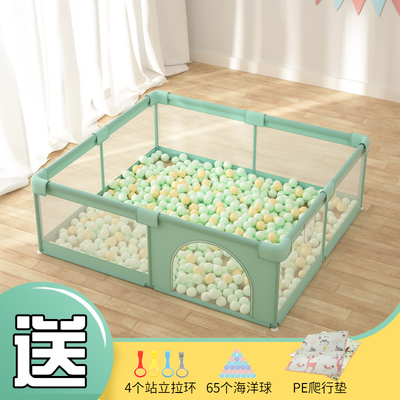 绿色围栏150*180+65个海洋球+爬行垫1cm送4个拉环