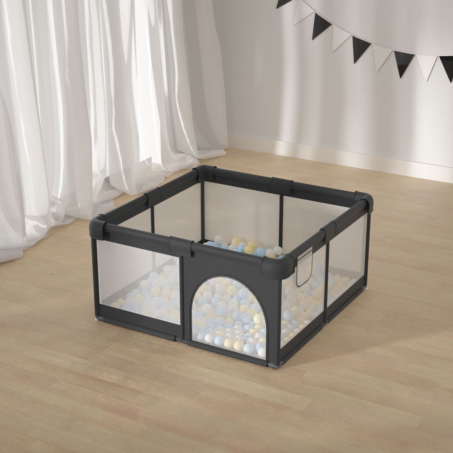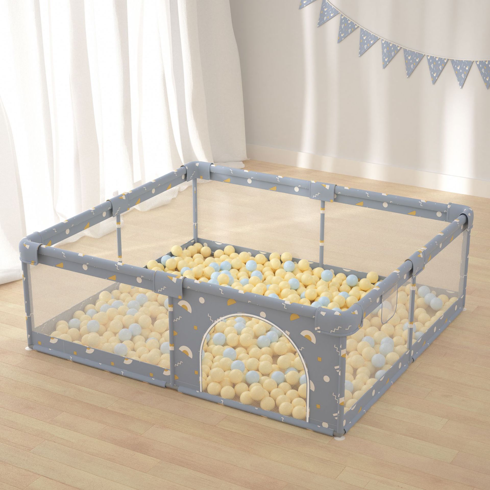 灰色围栏200*200+65个海洋球+爬行垫1cm送4个拉环