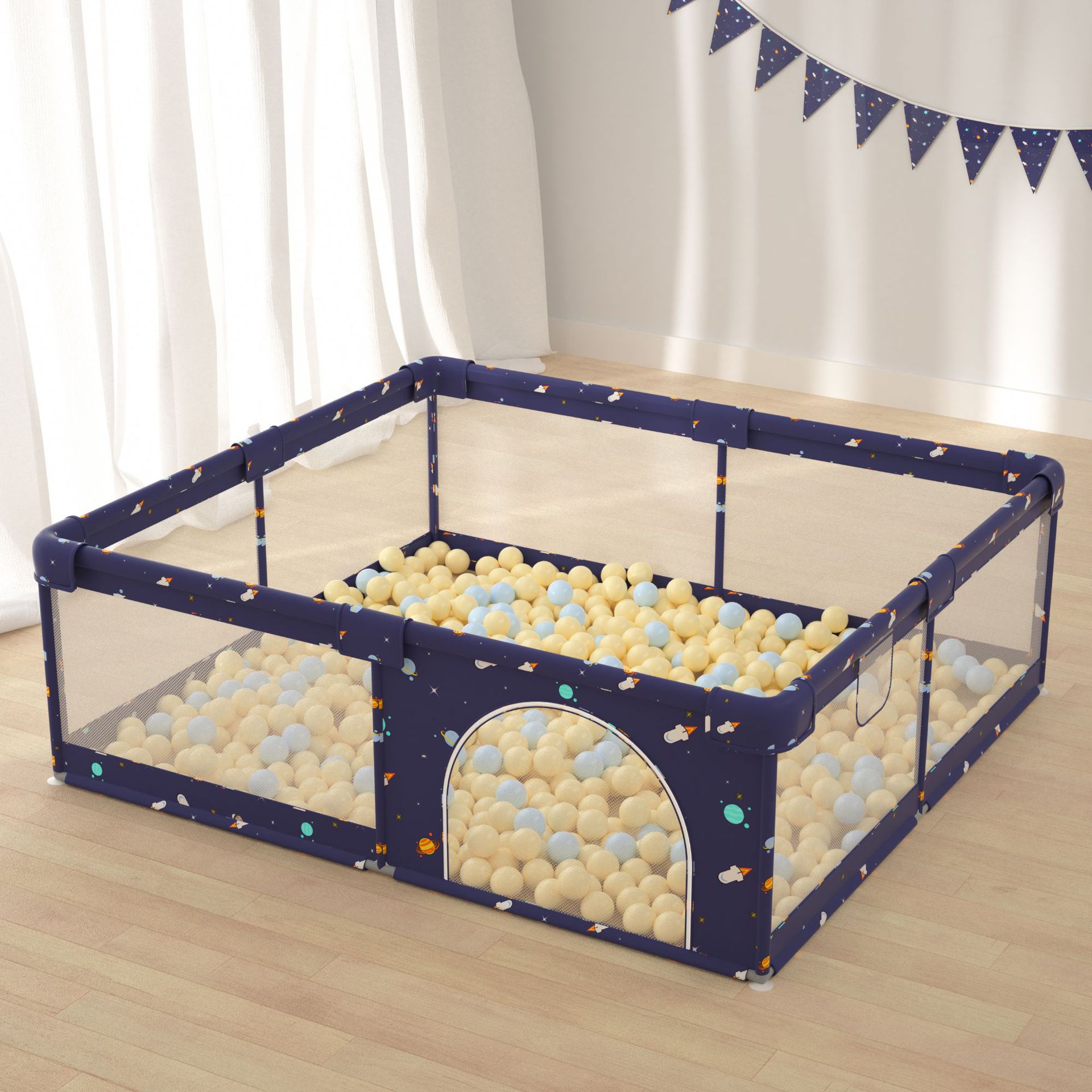 灰色围栏180*200+65个海洋球+爬行垫1cm送4个拉环