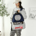 navy blue and red color blocking