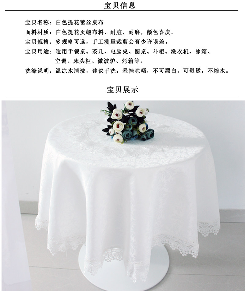white beanie water soluble lace: round: 195cm suitable for 110-155cm round table