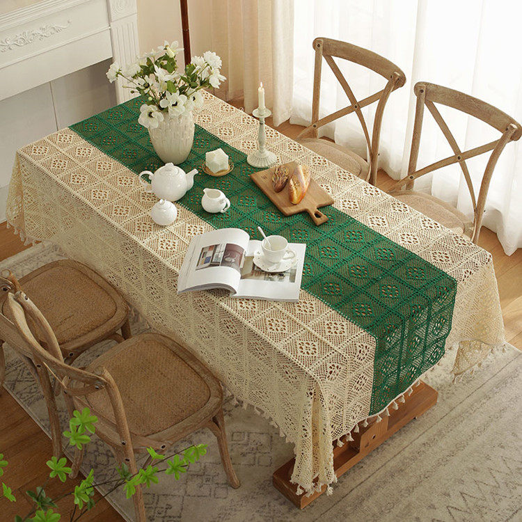 beige plaid tablecloth in the middle: 140 * 250cm