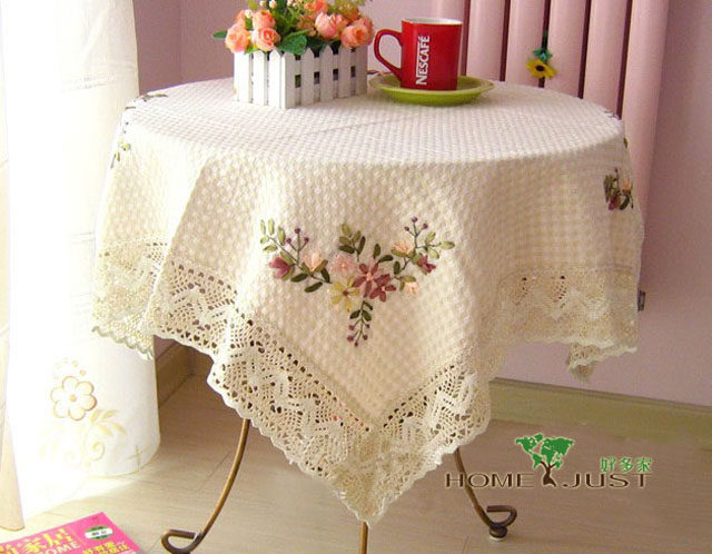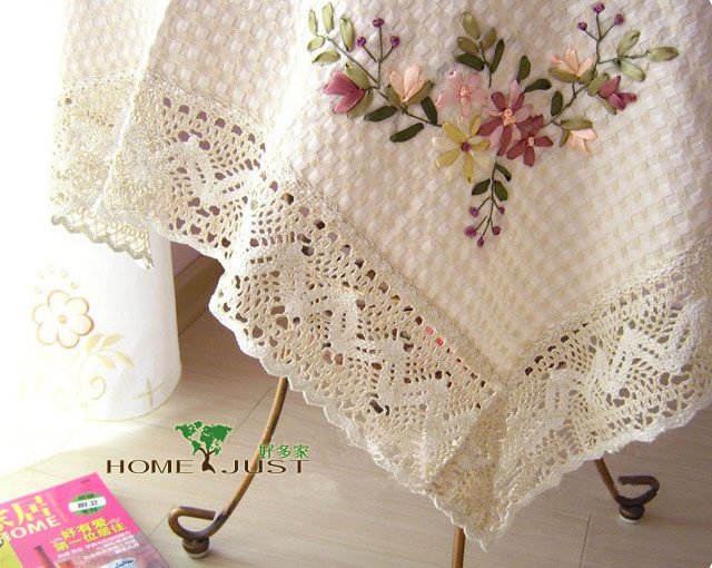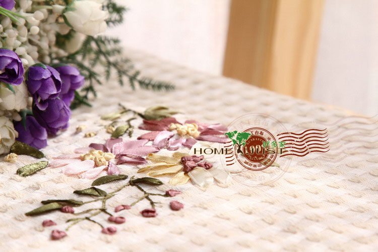 Product Name: Homejust brand silk ribbon embroidery cotton linen tablecloths