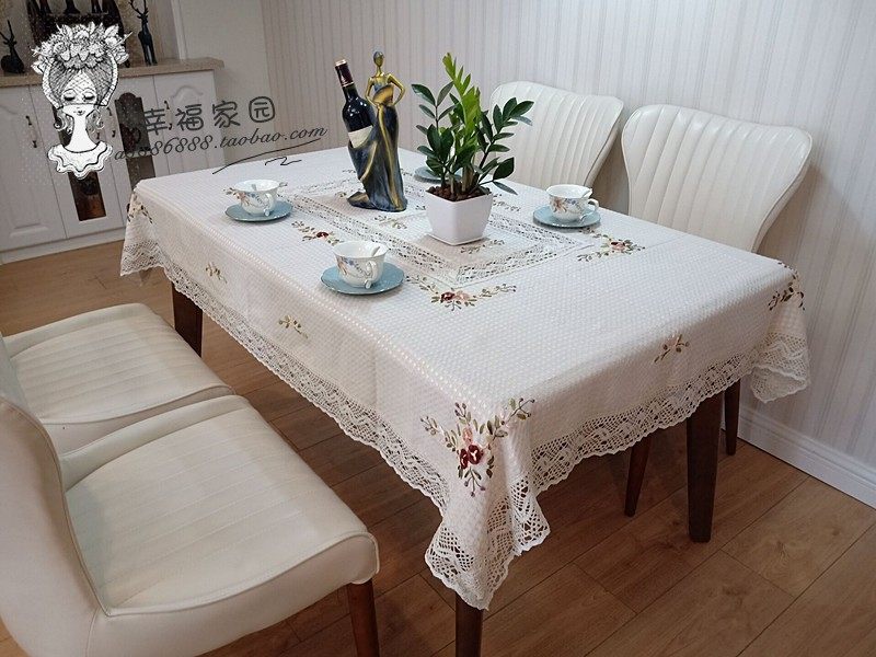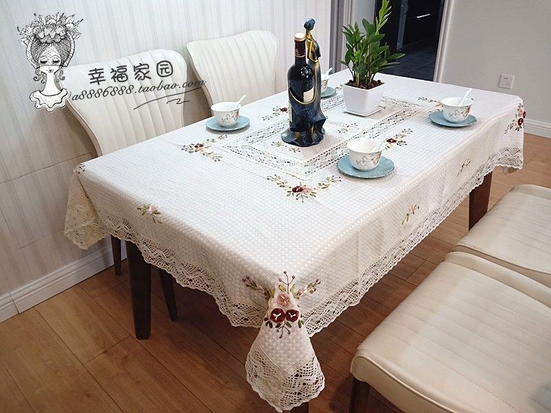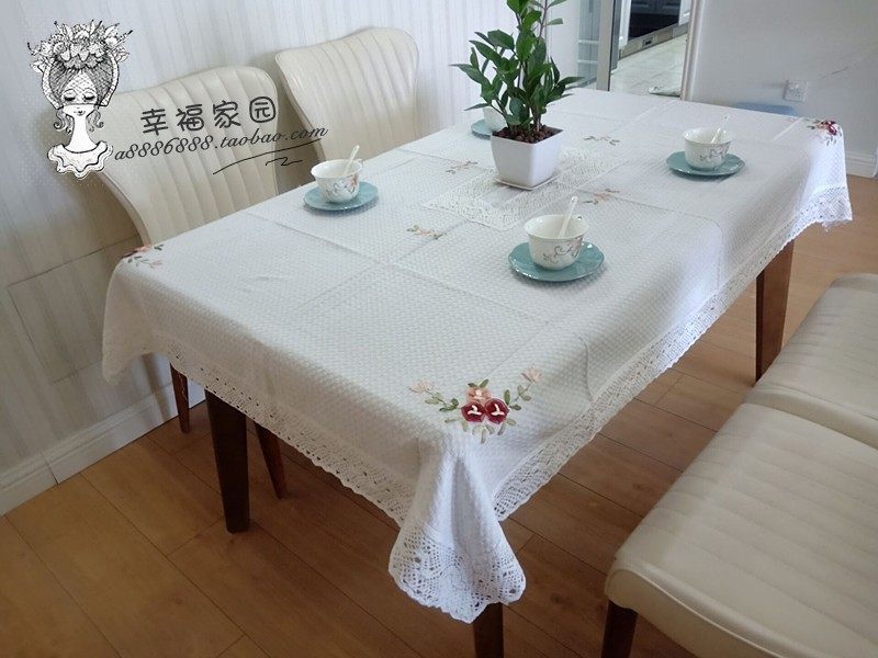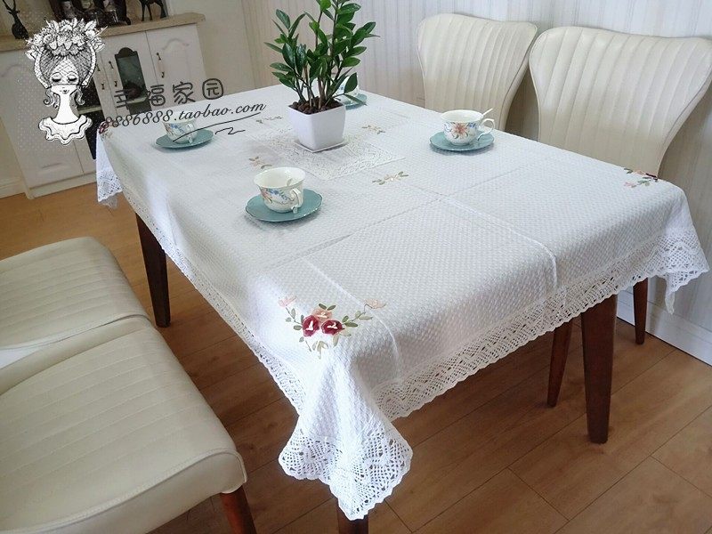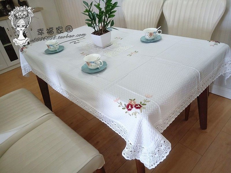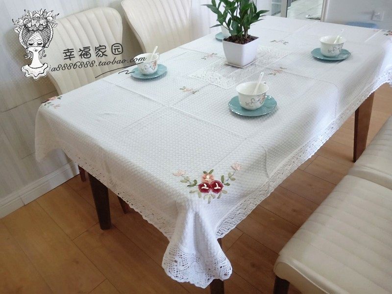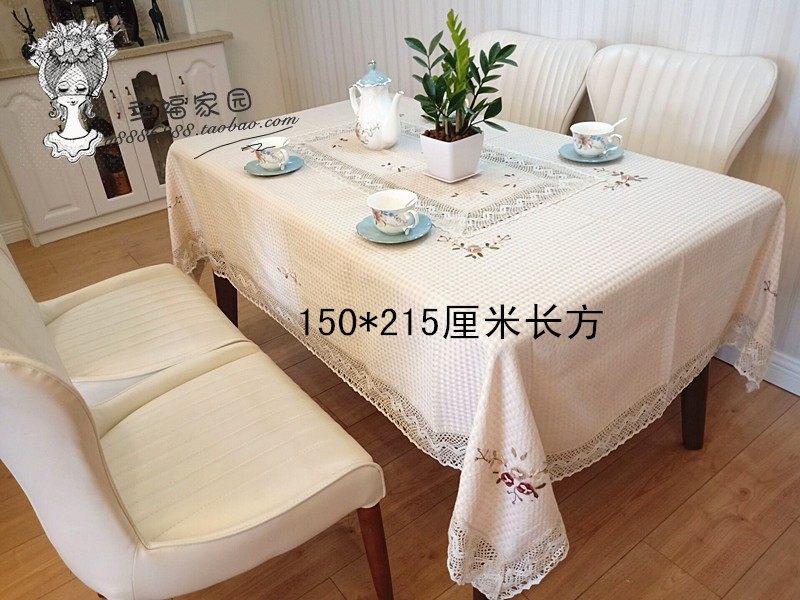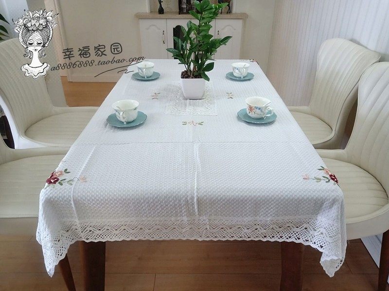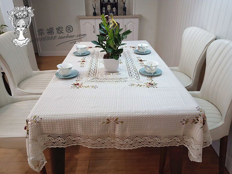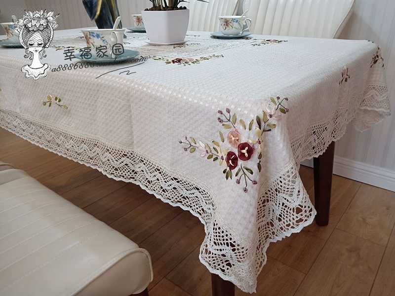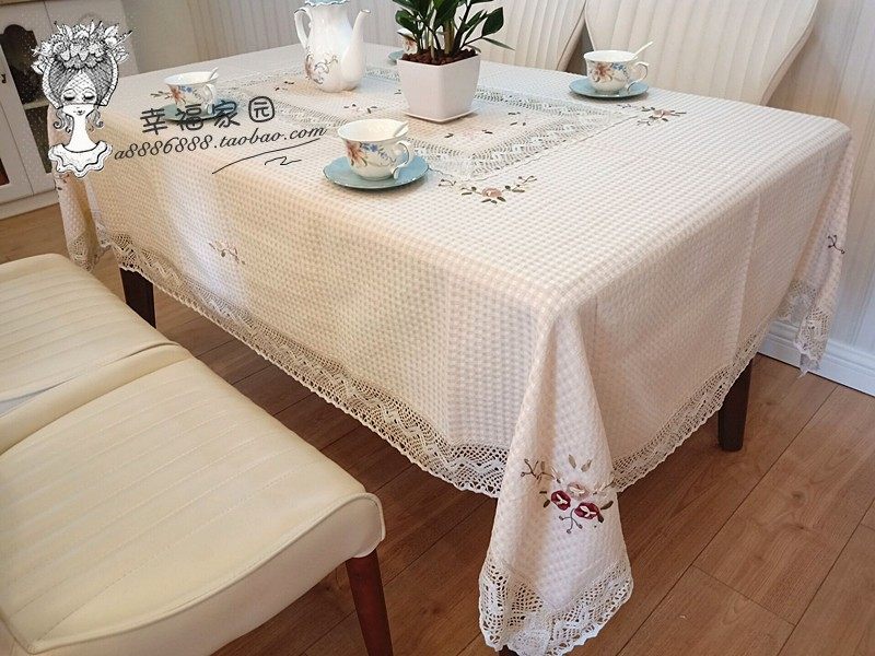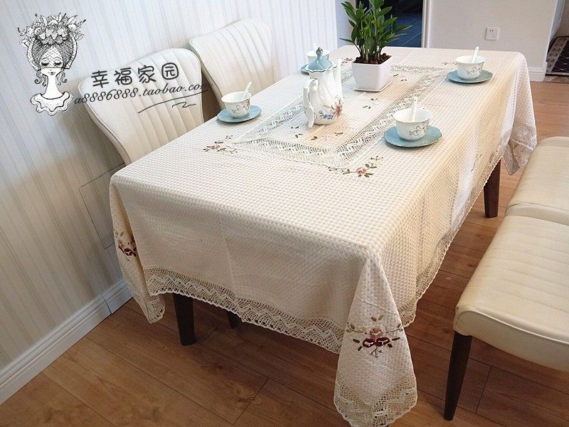 Exported to Europe and America, beige waffle cotton-polyester blend hand-embroidered tablecloth, tea table cloth, special discount.