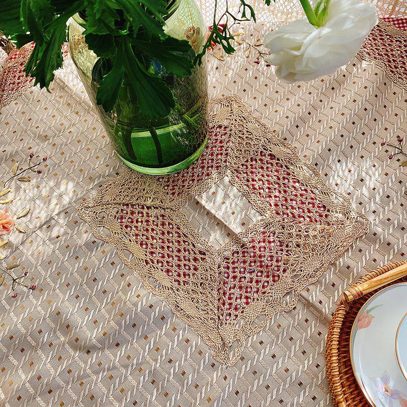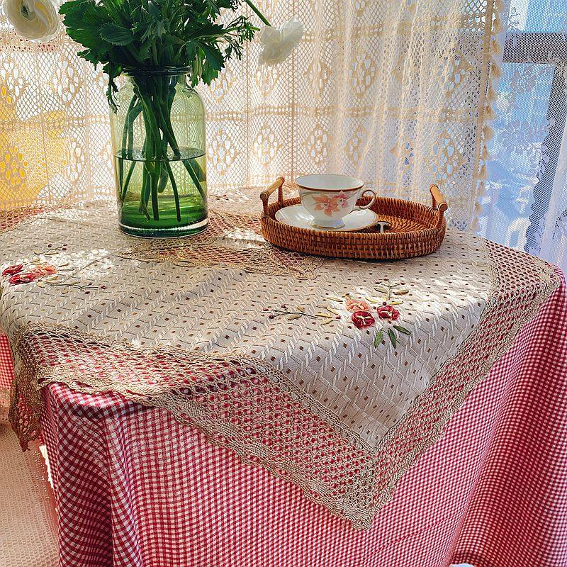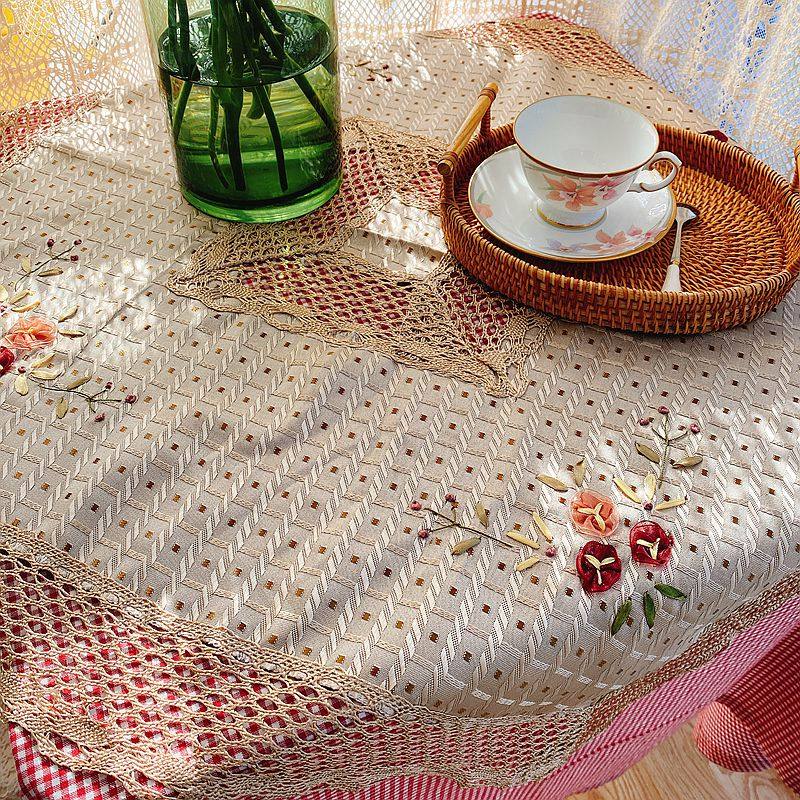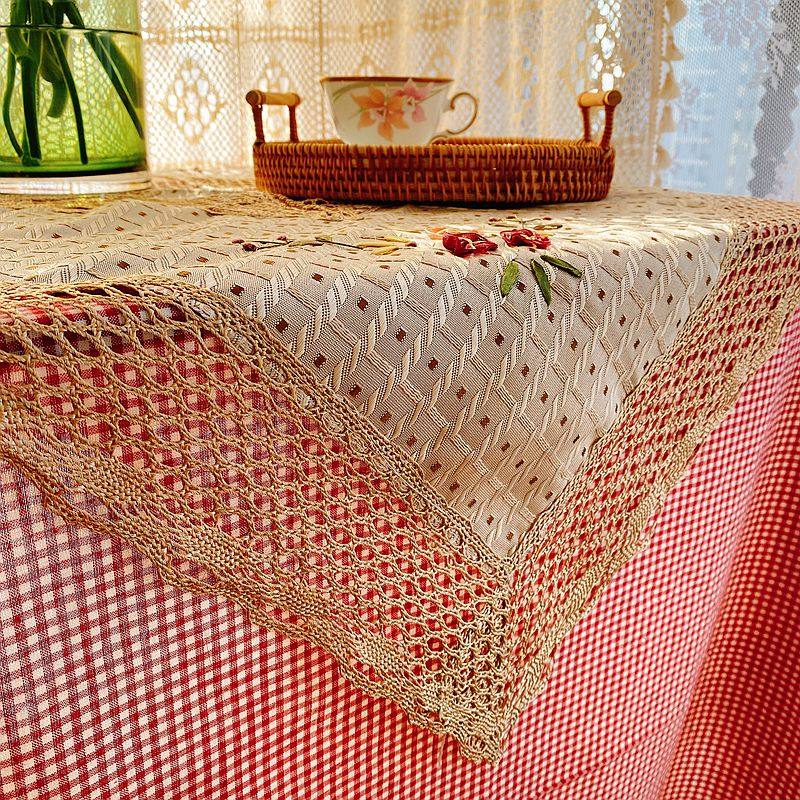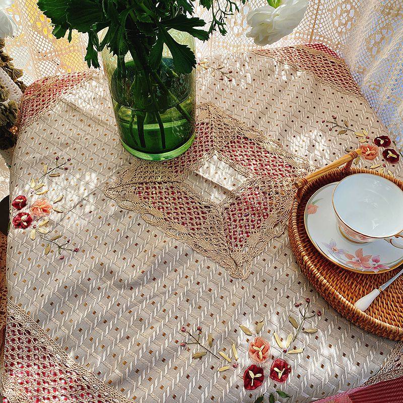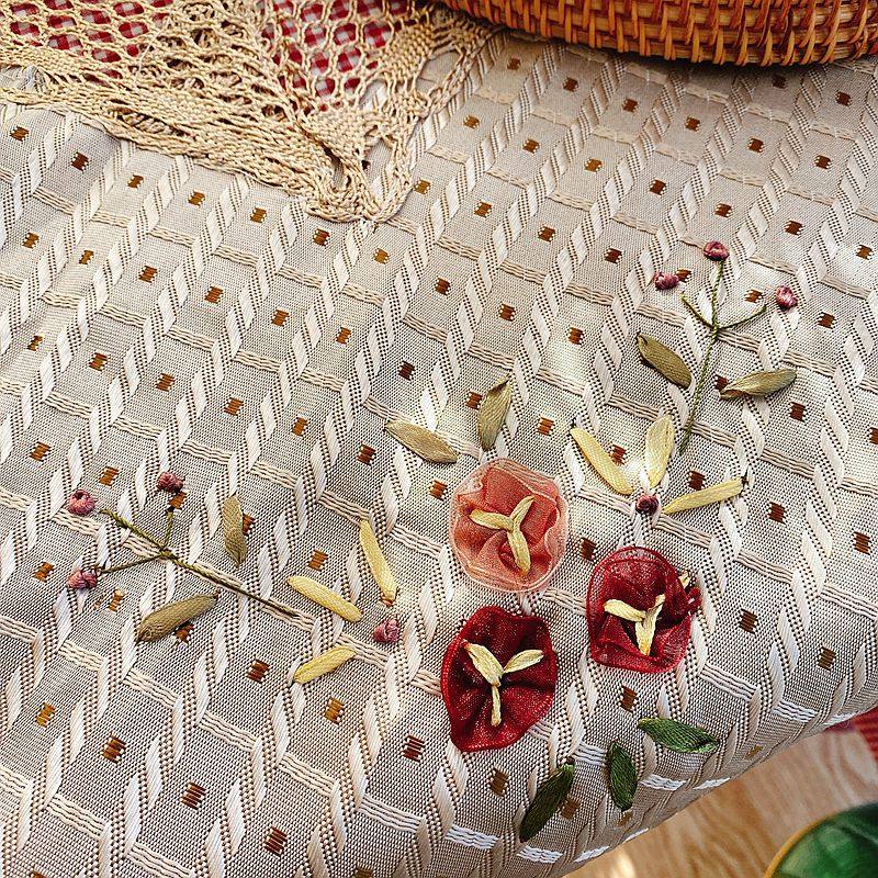 Exporting original stock European-style rural style handcrafted silk ribbon embroidery square tablecloth