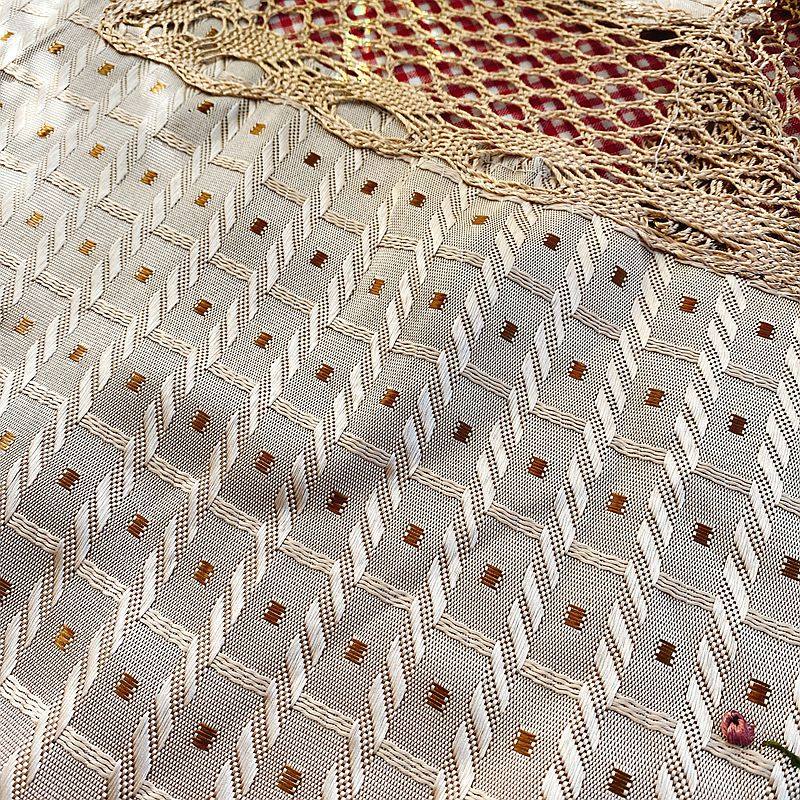 【Color】Coffee-colored jacquard fabric with lace